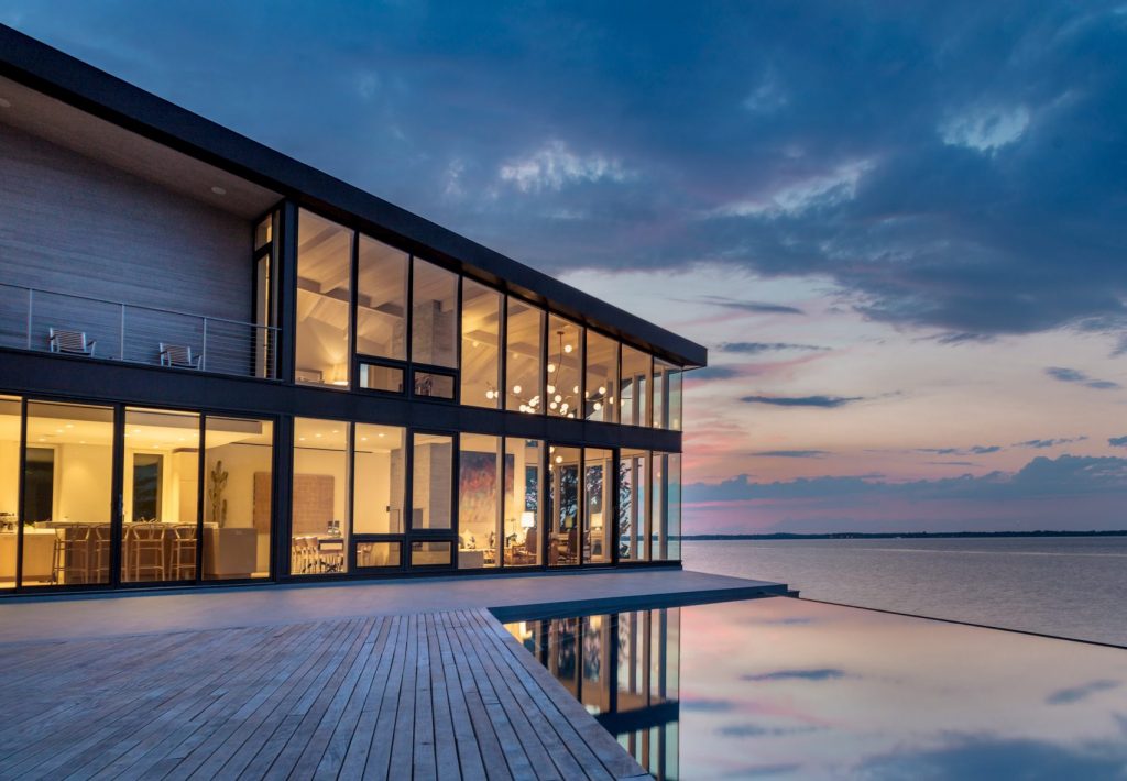 372 négyzetméteres és hibátlan ez a medencés, vízparti rezidencia: elegánsan kedves, modern és mégis otthonos, gyönyörű a medencéje, a tetőpázsitja, és az őt körülölelő természet pedig ráteszi a tortahabra a cseresznyét. A kikötő melletti nyaraló kezeletlen fával burkolt, de ez ne vezessen félre senkit, minden négyzetméterén érezni a masszív törődést. A ház a Peconic Bay-re tekint és a feszített víztükrös medencéjétől a tágas teraszán át a dizájnbútoraiig minden részletét imádjuk.