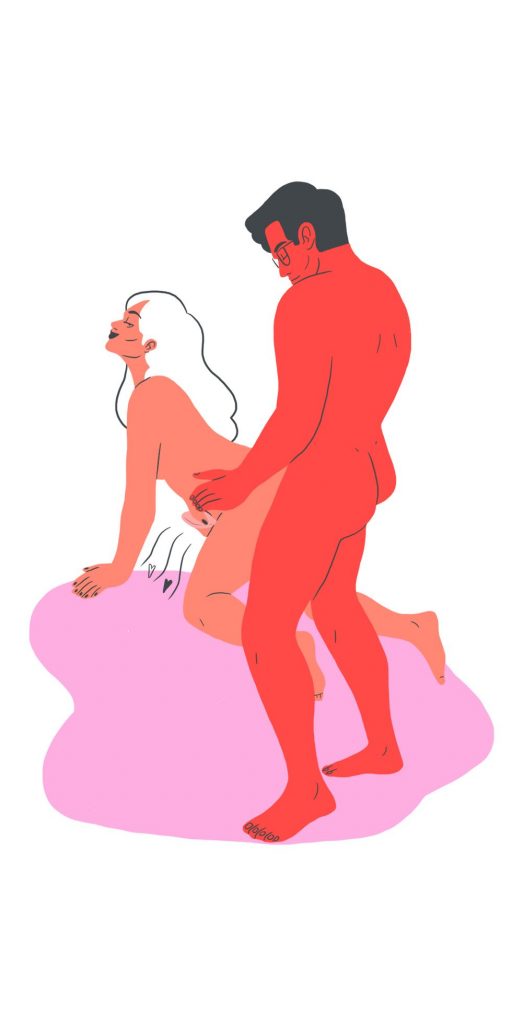 Ebben az irgalmatlanul szexi előjáték pózban a barátnőd áll, te pedig alulról izgatod a csiklózgatóval, miközben a másik kezeddel pár huncut ujjat is becsúsztathatsz. Síkosító ajánlott, orgazmus garantált.