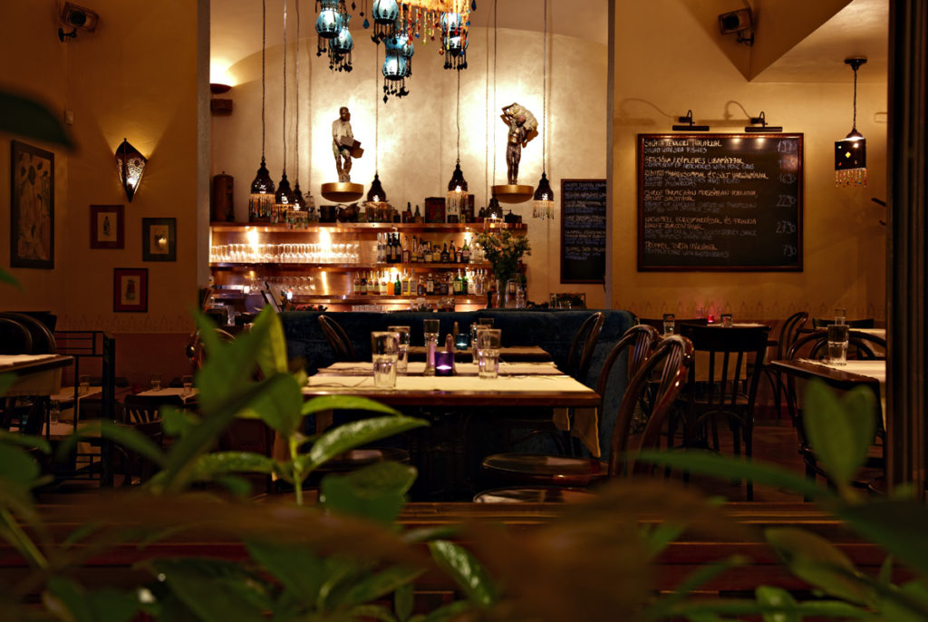 Ezt a helyet nagyobb baráti társaságoknak ajánljuk, a hely ugyanis pezseg, mint a legjobb champagne-ok. Az energia vibrál, a zene hangos, de a te társaságod is pont ilyen, úgyhogy bele fogtok illeni az atmoszférába. Az első és a hátsó teremben is elférnek nagyobb társaságok, a dizájn urbánus és pestiesen és kiszámítottan kopott, de közben boszorkányosan eredeti. A személyzet nagyon fiatal, de roppant kedves, mintha nem is szakmabeliek lennének, csak éppen felszolgálnak egy kicsit a diplomaszerzés előtt. A konyha ekletikus, minden az Araráttól az Atlaszig, vagyis van itt grúz, libanoni, zsidó és arab konyha.