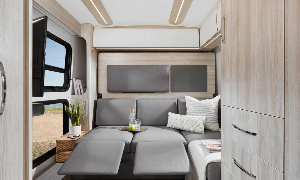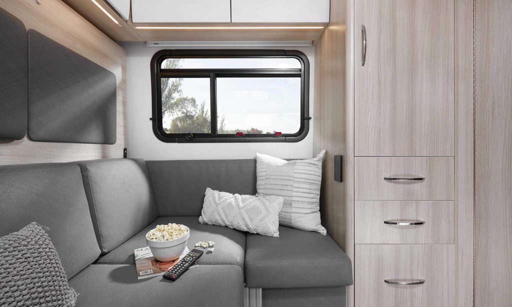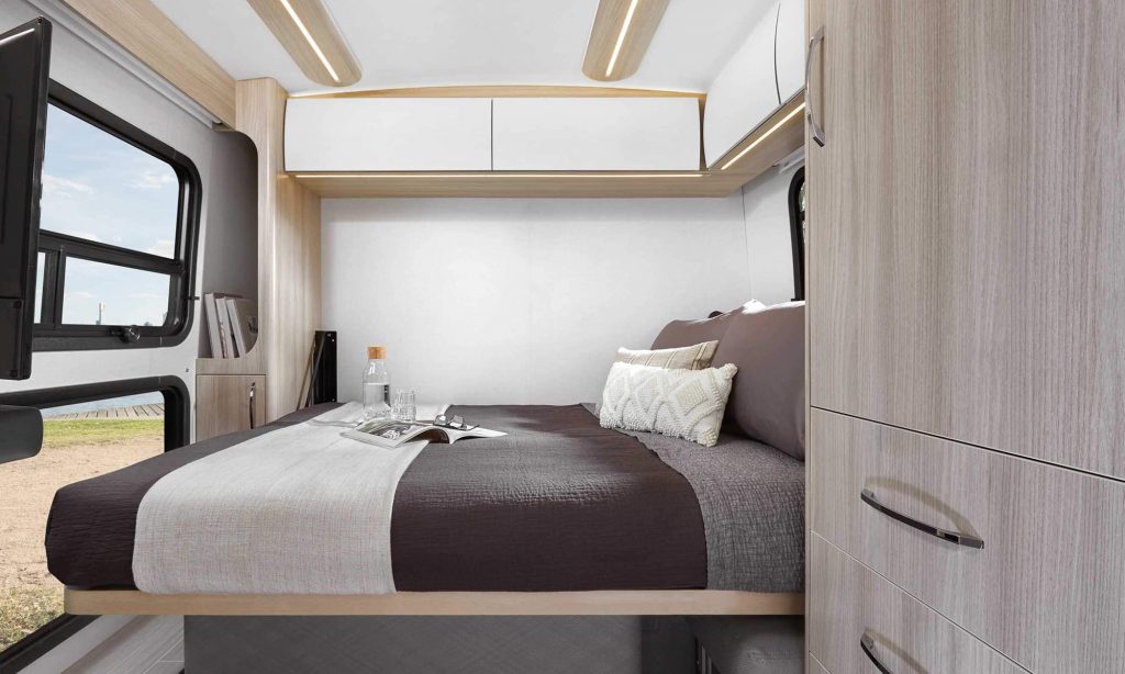A lounge estére átalakítható, és egy 147 centiméter széles ágy kerül a helyére. A lakóautó első részében, a hátrafordítható vezetőülés mögött konyha és étkező található, a lounge-hálószoba egységtől pedig a zuhanyozós és mellékhelyiséges fürdőszoba választja le.