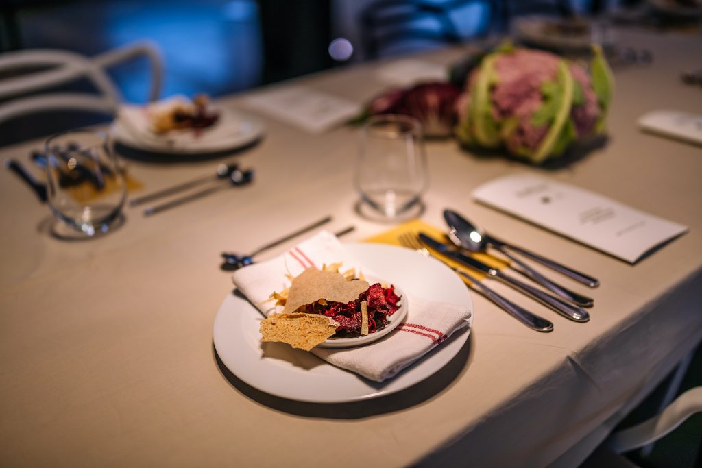Végigmentünk egy hétfogásos menüsoron, de előtte mindenről megtudtunk, micsoda, hogyan készült, miért előnyös egészségi/környezeti szempontból. Például kiderült, hogy a magunk termelte vagy megbízható forrásból származó (értsd: nem permetezett) zöldségek héja simán ehető. Egy alapos leöblítés után chipset süthetünk belőlük, de például a menüsorban volt krumpli héjából főzött leves is – benne a krumpli belsejéből készült gnocchival, ami sokkal finomabb volt a bolti csomagolt változatnál.