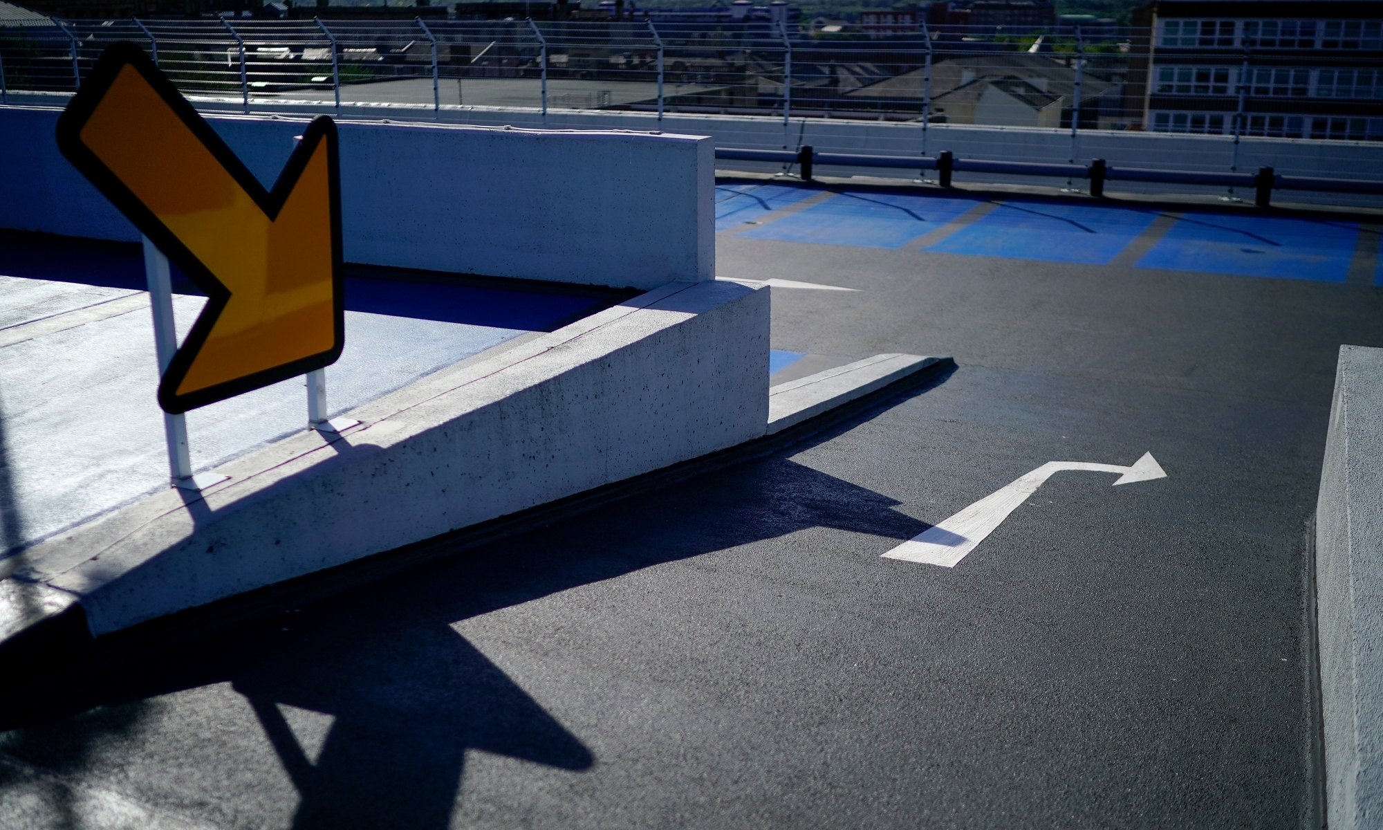 Homlokzatának jellegzetessége a horizontális tagolás és az ívesen felfelé hajlított beton, utóbbinak oka, hogy a függőleges fal felületkezelését túl költségesnek tartották. A szerkezet síkjából kiugró elemek egyúttal védelmet nyújtanak esőben a buszra várakozóknak, továbbá megfelelő távolságba esnek a parkoló autók sérülékeny lökhárítóitól. A parkolóház falai a felújítás után visszakapták eredeti fehér színüket, a helyeket kékkel festették fel, a le- és feljárókra pedig felújított narancssárga nyilak terelnek.