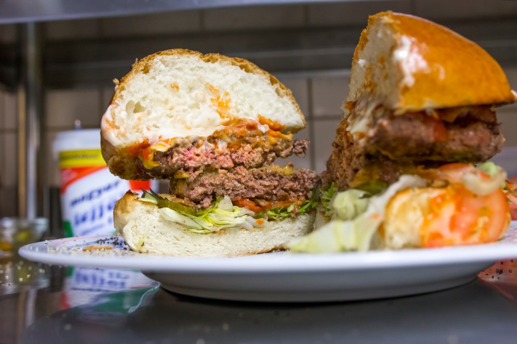 Nem véletlen, ha Laci neve ismerősen hangzik, hiszen szakmailag ő állt a Floridita remek kiszállítós burgerei és ételei mögött is. Természetesen végigjárta a szakmát, dolgozott már Szegeden, a Balatonnál, Ausztriában is lehúzott egy kevés időt, mire úgy döntött, hogy inkább itthon egyengeti tovább az útját. Ennek szellemében ki is penderített két jófajta húspogácsát a sütőlapra, ezek mindegyike 18 deka, hátszínből készül, és egy hetedik kerületi hentestől érkeztek. A hús-faggyú arány a klasszikus 80–20, ez biztosítja ugyanis, hogy meglegyen a kellő szaftossága a pogácsáknak.