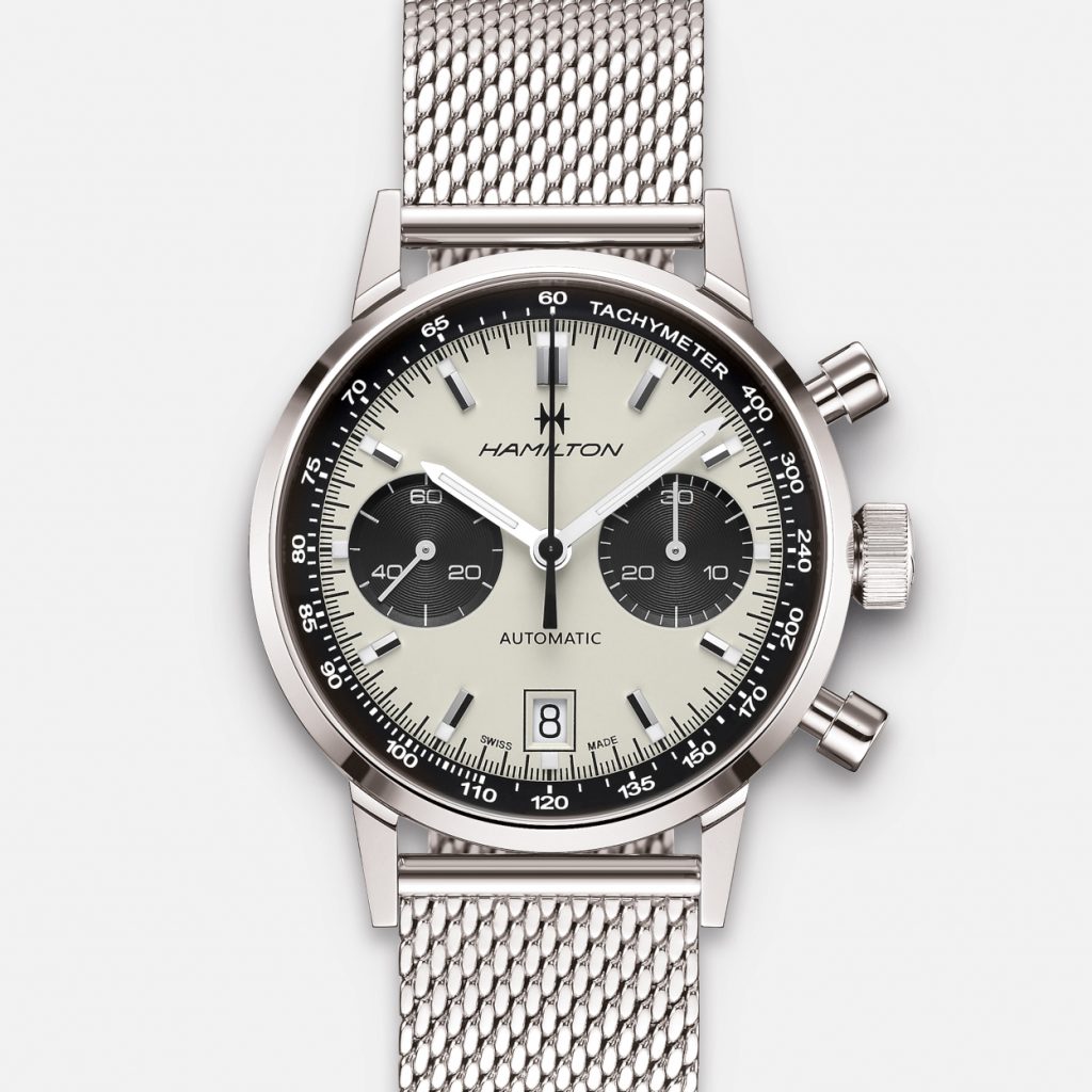 Bár sem tokformában, sem a szíjat tekintve nem hasonlít a fehér Rolex Daytonára ez a Hamilton, de azért gyönyörűen érződik rajta a vintázs Paul Newman Daytona-hatás. A viszonylag komoly, 100 méteres vízállósság nagy fegyvertény, pláne, hogy a pump típusú chronogombok nem menetesek, arról már nem is beszélve, hogy a H38416111 referenciaszámú karóra 60 órás járástartaléka kifejezetten szép teljesítmény az extra chronographfunkciók mellett.
