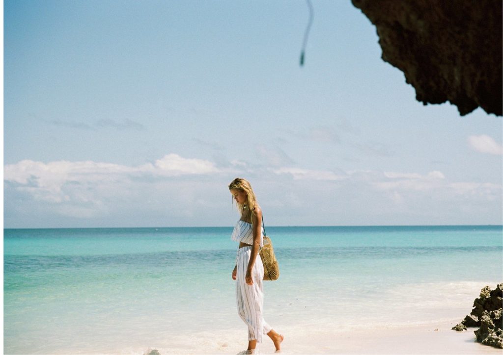 A kampány főszereplője Frida Aasen, vele már jó párszor találkozhattunk itt, a Player virtuális hasábjain. A helyszín Zanzibár, ami ebben az anyagban olyan helynek tűnik, ami tökéletes színpada az élet elviselhetetlen könnyűségének és a dolce far niente, azaz édes semmittevés életstílusnak.