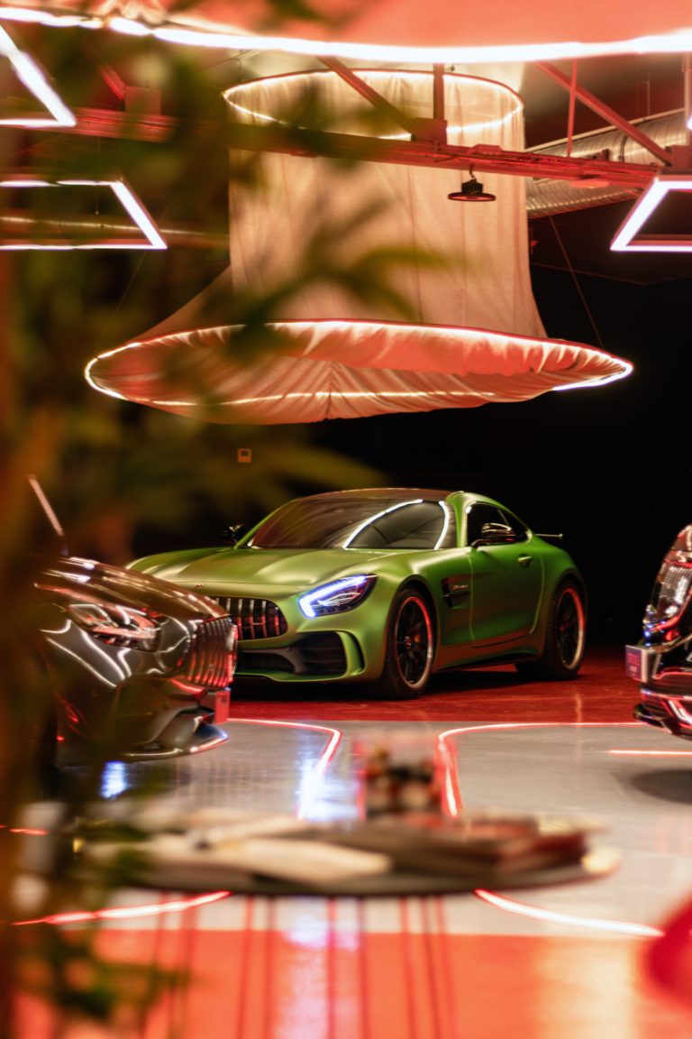 Ebben a showroomban a fénnyel és színekkel létrehozott különböző környezetekben fedezhetjük fel az autókat.