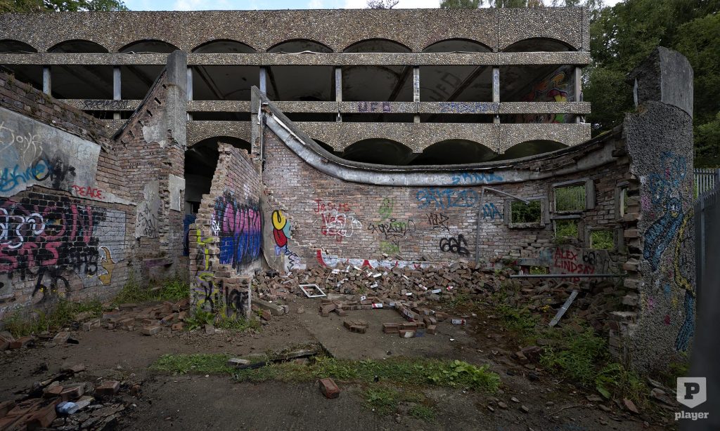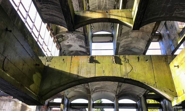 csak a csupasz betonváz maradt, amitől leginkább parkolóháznak, vagy félbemaradt építkezésnek tűnik,