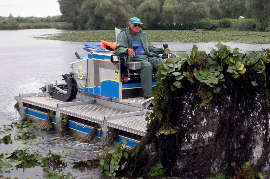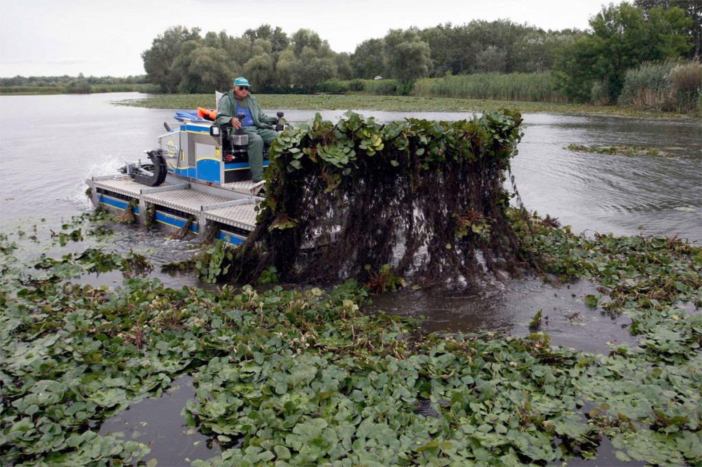 Egy elég jól felextrázott 7-es BMW-t is vehetett volna a kétéltű 38 millió forintos árából a tározó halászati hasznosítását végző cég, de mégis jól választottak, mert az biztos nem kaszálná ilyen magabiztosan a hínárt. A sulyom egyébként védett, de úgy elburjánzott, hogy gyéríteni kell.