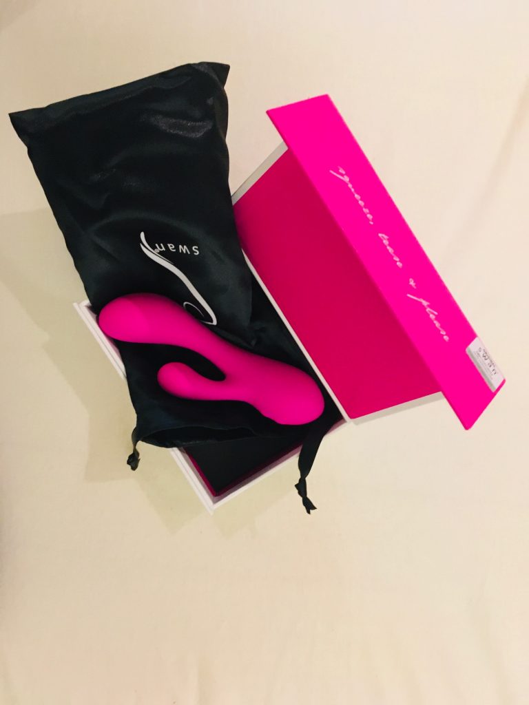 A számos nemzetközi díjat elnyert Swan termékcsalád Hug nevű termékéről először az jutott eszembe, hogy a legtöbben el sem hinnék, mennyire formatervezettek is lehetnek a szexjátékok. A Hug csiklókaros vibrátor rózsaszín, formás, plusz gyönyörű és bársonyos szilikonborításával már a legelső kézbevétel is nagyon pozitív élmény, nem is beszélve az elegáns kis keményfedeles dobozról és a fekete, szexi szaténtasakról.