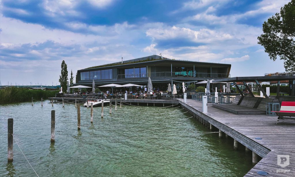 Weiden am See-ben, egy helyre kísérős, elegánsan berendezett, puccos étteremben. A legmenőbb arcok saját kis Fertő tavi jachtocskájukkal érkeznek ide és a hely saját kikötőjében szinte a hajóról közvetlenül lépnek ki az asztalukhoz.