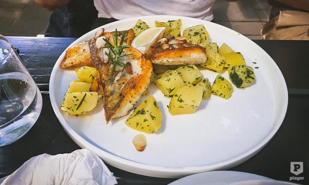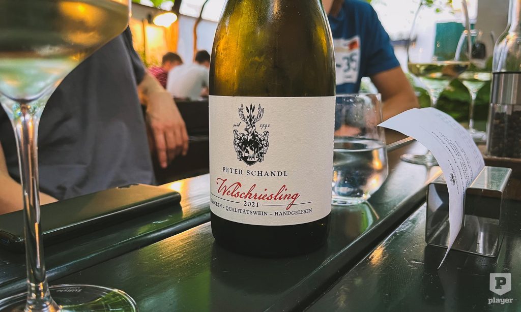 A többiek se panaszkodtak; vínersniclitől fogasfiléig mindenki messzemenőkig rendben lévőnek érzett mindent. Az ételekhez ajánlott hűvös fehérborokban tisztességes, tiszta ízű rizlinget, szürkebarátot és pinot blanc-t ismerhettünk meg, de a „ház borából” spriccelt fröccsökkel sem volt semmilyen probléma Tomi kollégánk szerint, aki ezt a rusztikusabb kísérőt választotta a vacsi mellé.