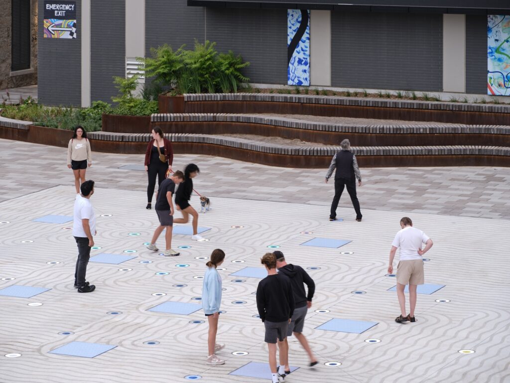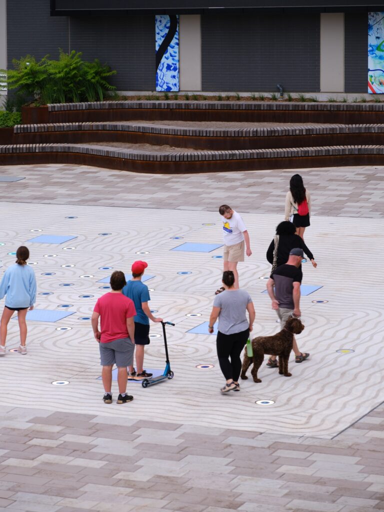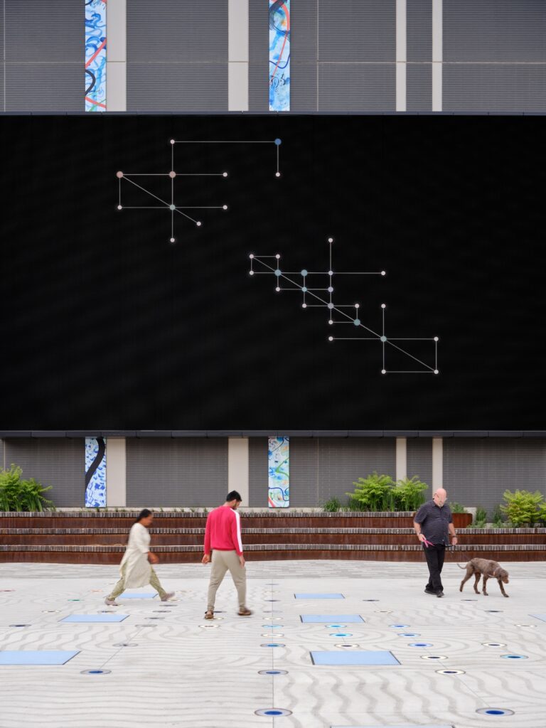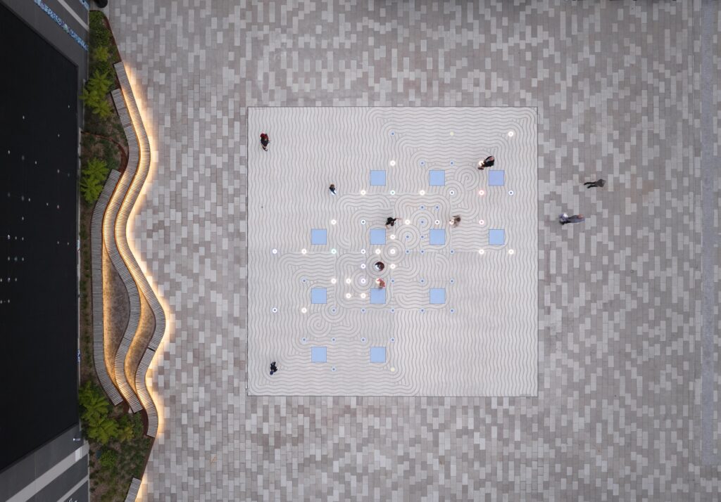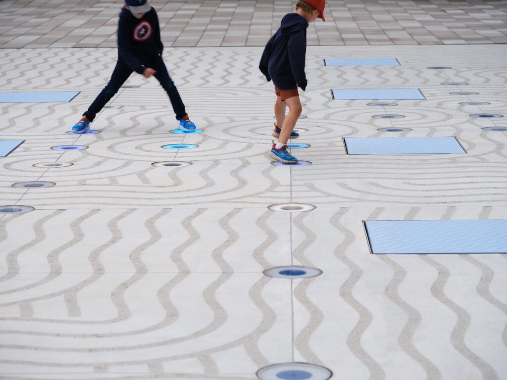 Mouna Andraos és Melissa Mongiat stúdiója már több mint hatvan városban készített projektet világszerte, de a „zenélő járda” sorozatból ez a legambiciózusabb: egy interaktív, hullámmintás járda, hatvankét érzékelő fénygyűrűvel, amelyek segítségével együtt zenélhetnek az emberek.