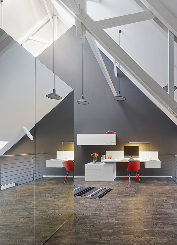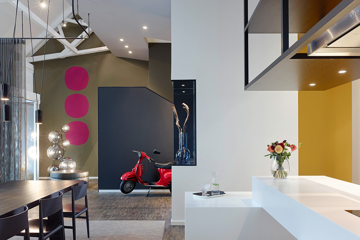 Gömbök, elfolyó tükrök és plafonról lógó asztal – csak egy-két abszurd részlet ebből a merész, nem megalkuvó német loftból. A Palmscher Parkban, Esslingenben felújított ház régen egy katonai barakk volt, most viszont pimaszul formabontó loftlakás, melynek minden részlete megér egy misét.