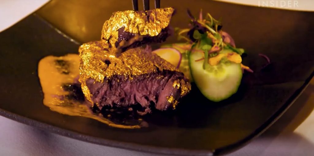 A steakhouse legsúlyosabb luxusétele, a 24 karátos arannyal bevont Tomahawk steak, amelynek lényege, hogy a bélszínen egy jókora darab bordacsontot is rajta hagynak.