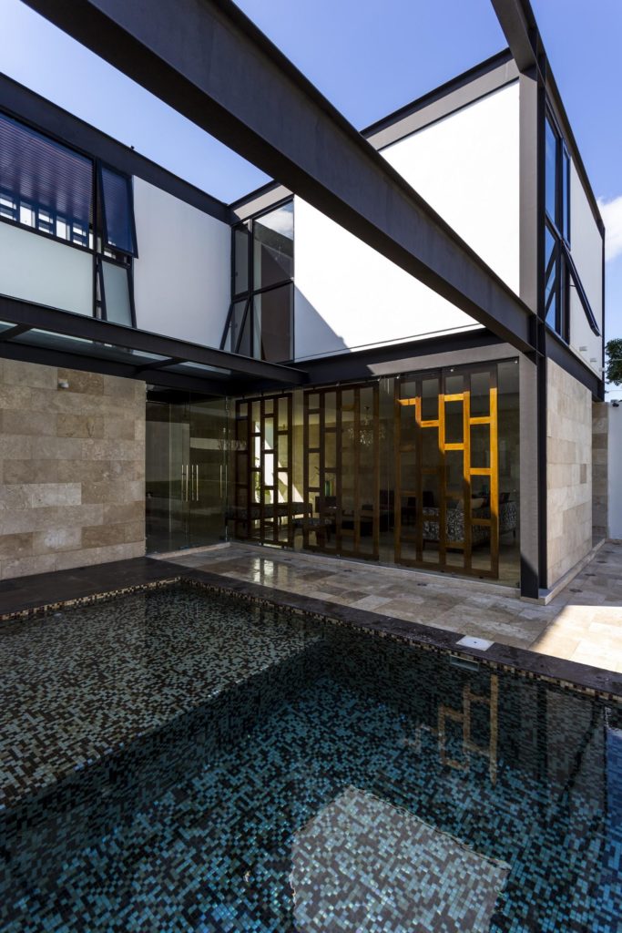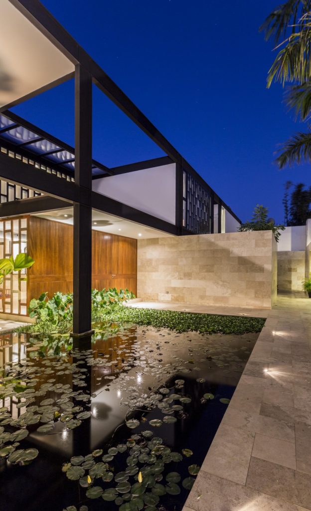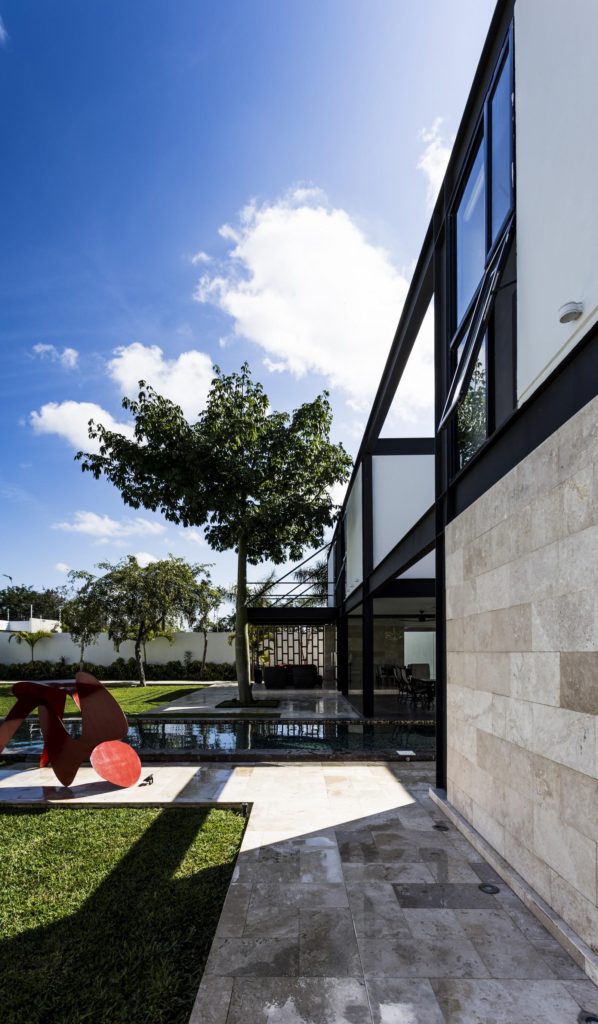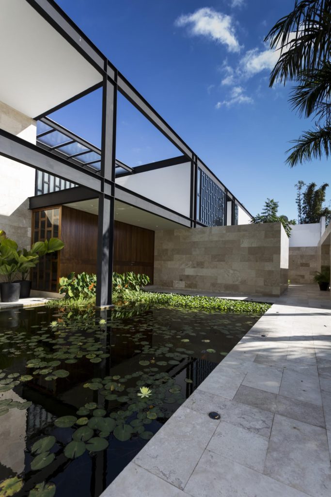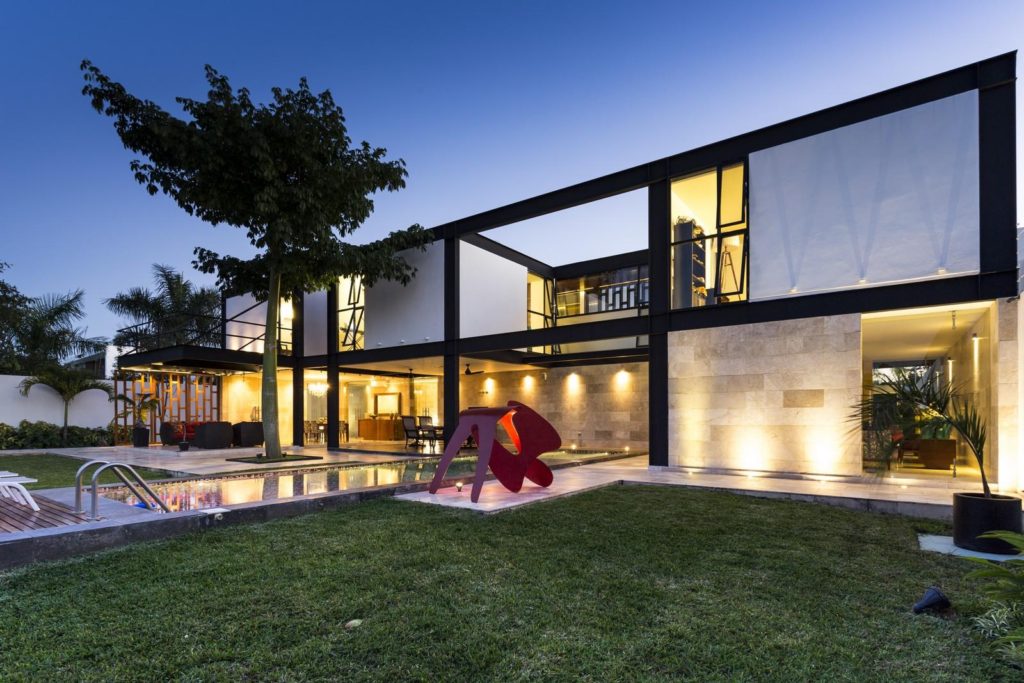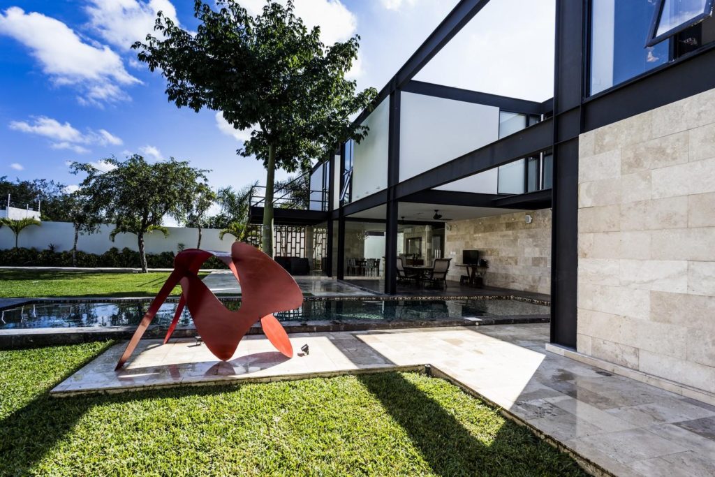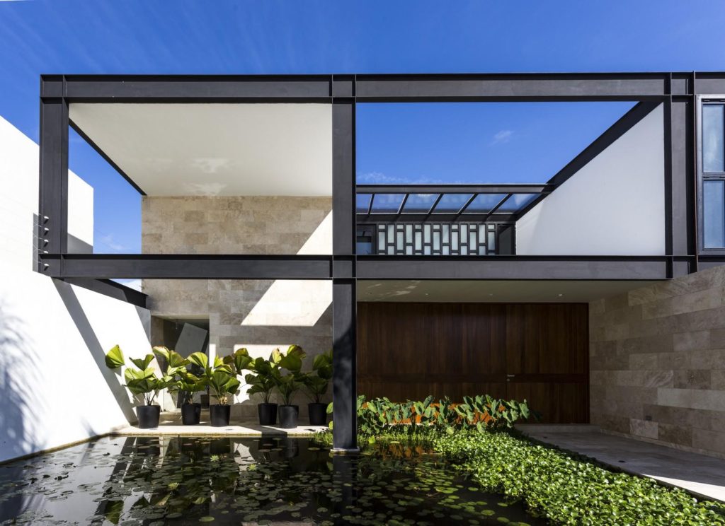 Meridában, a Yucatán-félszigeten tündököl ez az elegáns, formatervezett és nem mellesleg óriási (1460 négyzetméteres) tengerparti luxusrezidencia. A hatalmas fémoszlopok indusztriális jellegét lágyan harmonizálják a fa- és kőelemek, a terek nyitottsága, a medencék és a színes bútorok – összességében csodálatos kompozíciót alkottak az építészek.