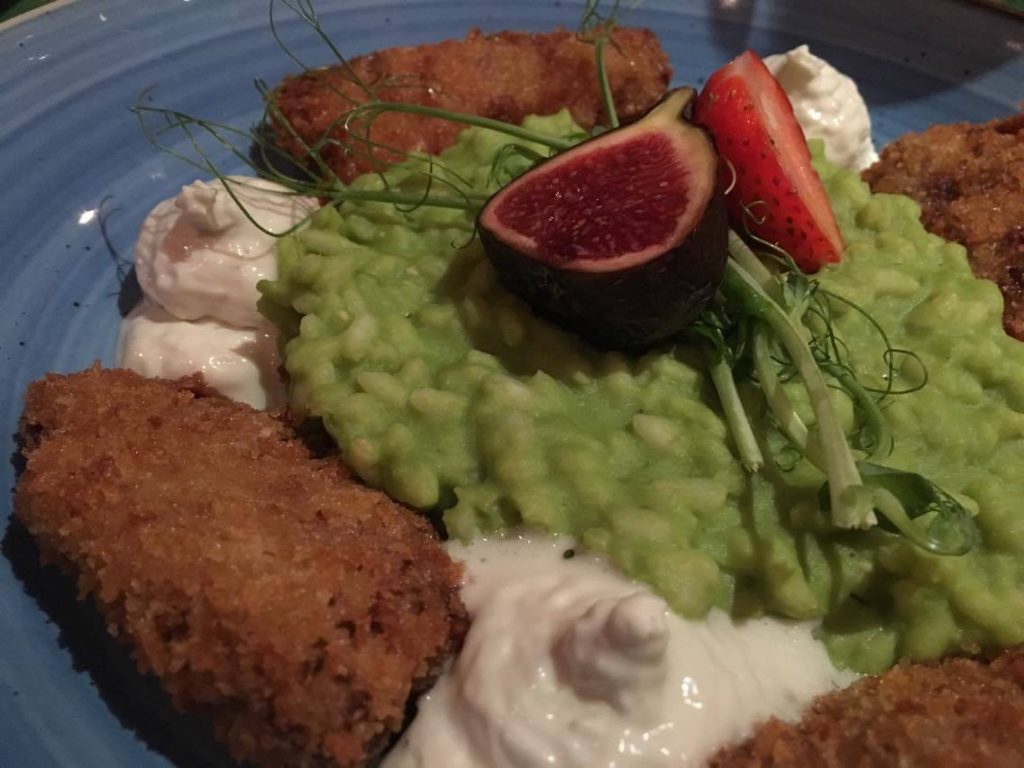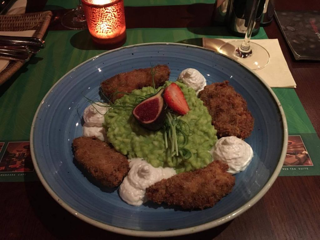 Ezúttal zöldborsós rizottó panko morzsában sült pecsenyekacsamájjal, Blue Stilton sajt habbal, illetve rozé kacsamell steak camamberttel, zölborsópürével és tócsnival került az asztalunkra, majd rövidesen a gyomrunkba. Az ételek nevéből is látszik, hogy ezúttal valami igazán különlegesre vágytunk, olyasmire amit nem lehet akármelyik utcasarkon megvásárolni. Hát meg is kaptuk! Az összetevők ízei profi módon passzolnak egymáshoz (mondjuk ezt mi, amatőr ínyencek), és ezeknek a fogásoknak a méretével sem volt problémánk! Mire az egészet elpusztítottuk és leöblítettük egy-egy pohár borral, nem is maradt hely a szenzációs desszertnek.