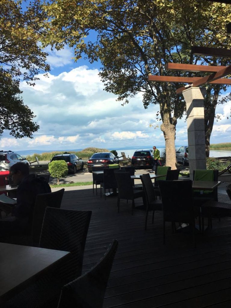 Este 8 óra körül toppantunk be pénteken - előzetes asztalfoglalás nélkül - és majdnem meg is szívtuk, hiszen az étterem teljesen tele volt, pedig azt reméltük, hogy a szeptemberi off-szezonban nem lesz telt ház egy Balaton parti étteremben. Rosszul hittük. Szerencsére azonban egy picike két fős asztal még szabadon árválkodott az ajtó mellett (a huzatban). Elfoglaltuk a helyünket, megkaptuk az étlapot és a nagy fejtörést követően kitaláltuk, hogy mit kérünk, majd pedig nagyon meglepődtünk, amikor alig 15-20 percnyi várakozást követően elénk tették ezeket: