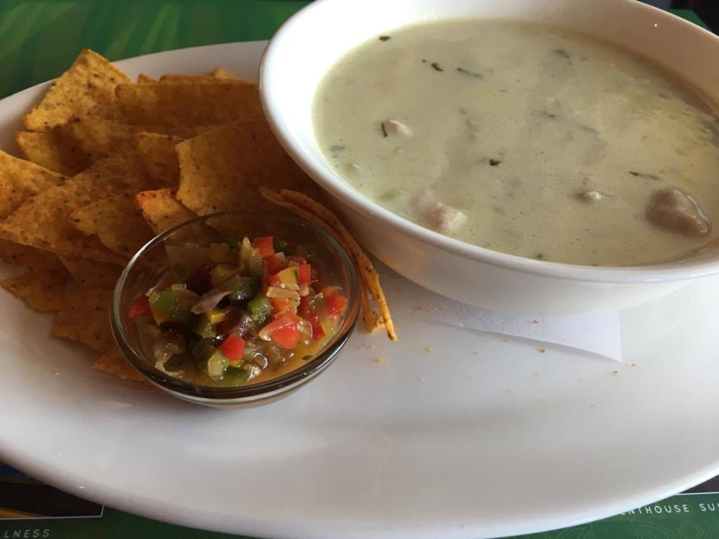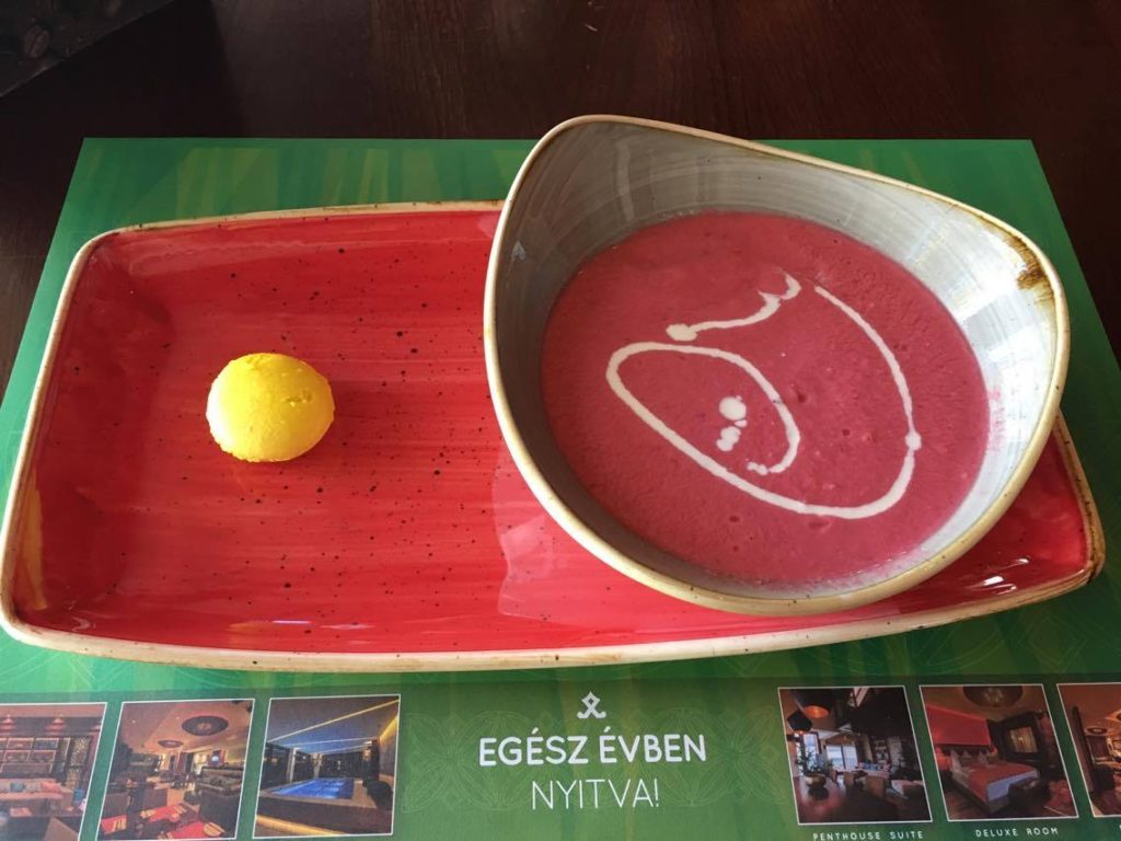 Ezt azonban vasárnap délben pótoltuk, ugyanis hazaindulás előtt még egyszer (igen, harmadjára is...) beültünk, hogy a leveseket is megkóstoljuk. A hideg, kókuszos málnakrémleves kötelező a gyümölcsleveseket kedvelőknek. Ehhez a fogáshoz egy kis citromos macaront is adnak, ami - hogy valamibe azért belekössünk - nem volt a legjobb macaron ever. Viszont, a mexikói csirkés sajtleves, a mellé pakolt tortillával és paradicsomos salsával úgy ahogy van, tökéletes.