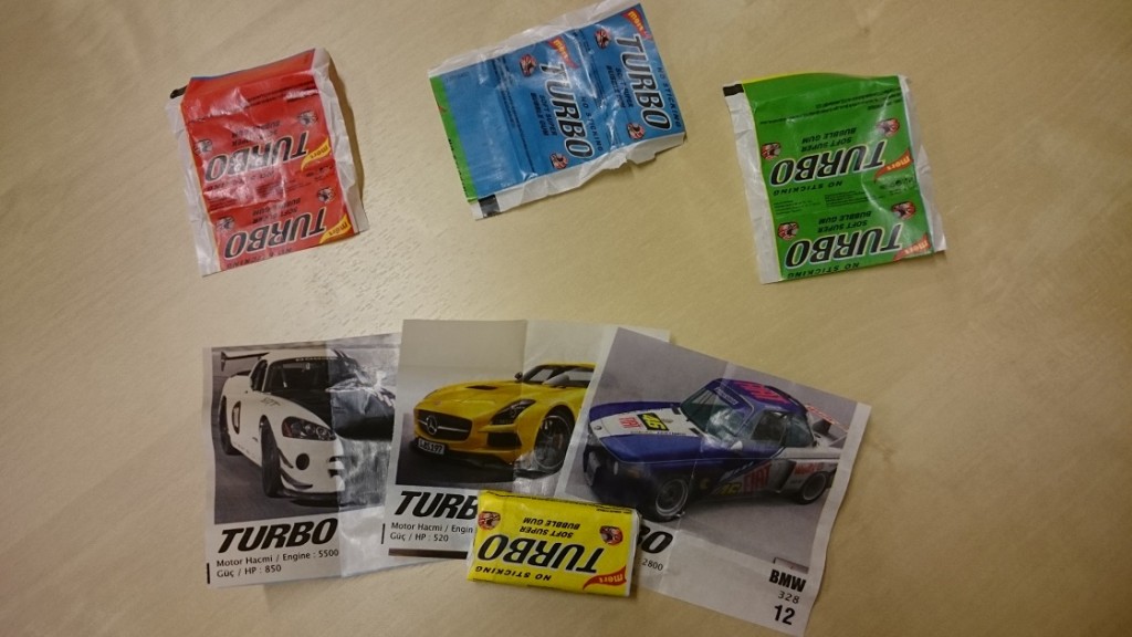 Mindhárman megegyeztünk abban, hogy a Turbo íze semmit sem változott. Kár, mert mi igen. Az íze ugyanis egyértelműen a Gabi fogkrémé, mintha a tejfogkrémet sikerült volna valamilyen boszorkányság útján szilárd formába önteni, és óvatosan körbetekerni egy autó fotójával, valamint azzal a pusztulatos csomagolással. Ó igen, a Turbóban még mindig vannak autófotók, egy BMW 328-at, egy Dodge Vipert és egy Mercedes SLR-t hajtogattunk ki, és ha valaki hiányolná azt a jó kis átlátszó, már-már zsírpapíros fílinget, akkor megnyugodhat, még mindig nem fejlesztettek a török srácok, tehát eddig mondhatjuk, hogy minden ugyanaz.