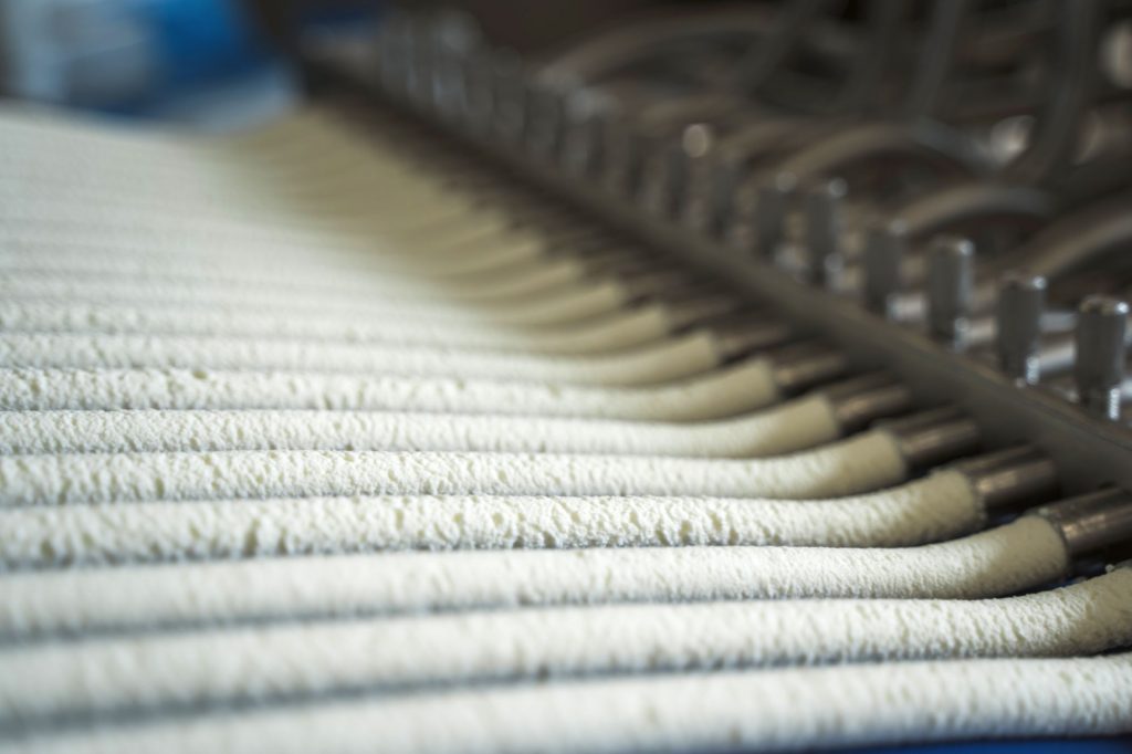 Az alapanyag a különböző ízesítőkkel, adalékokkal bekevert, hűtött túró. Ezt nyomják át szivattyúk az úgynevezett polipon, egy hajlított rozsdamentes acélcsövekből készült gyönyörű adagolószerkezeten, az egyelőre még végtelenített túrómasszaszálak pedig elindulnak kanyargós útjukon a zacskó felé. A gyártósoron szeletekre vágja őket egy gép, kialakulnak az egyedi termékek,
