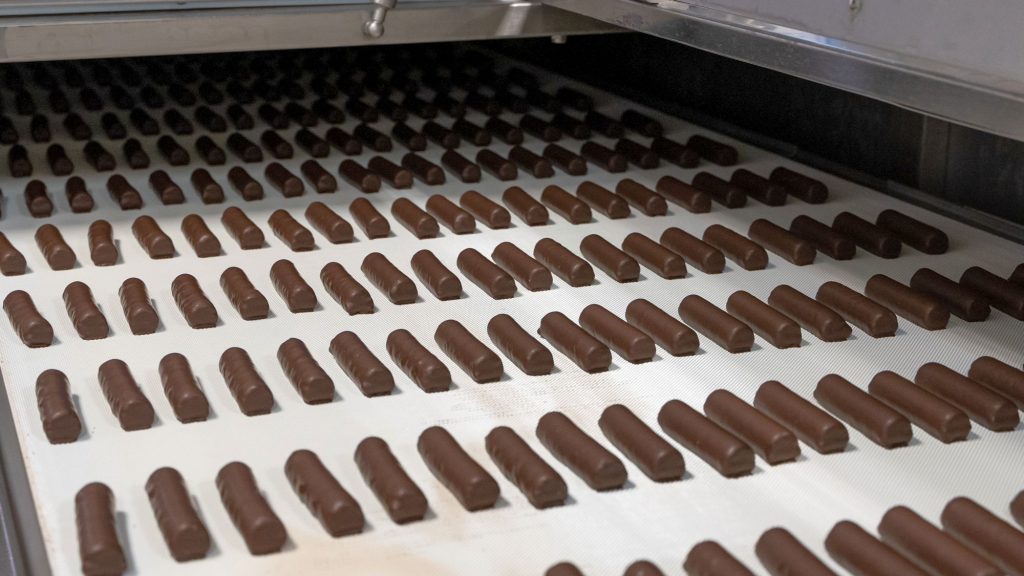 Megnéztük, hogy készül az étcsokis Túró Rudi, és megtudtuk, mi a neve a gyári szlengben a rudinak, amikor még pucér, vagyis nincs rajta a barna massza.