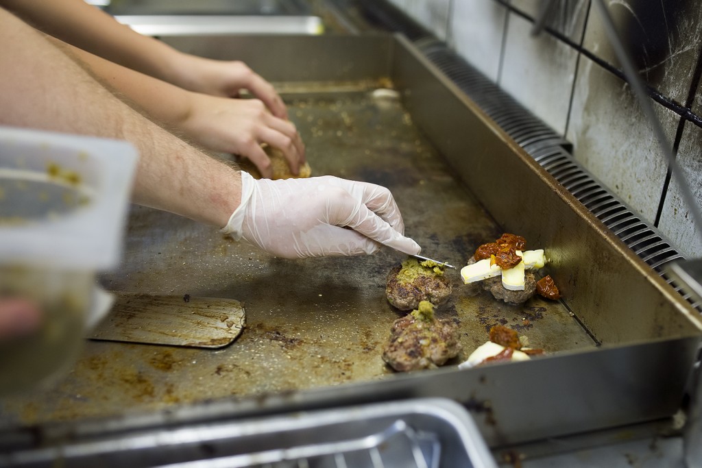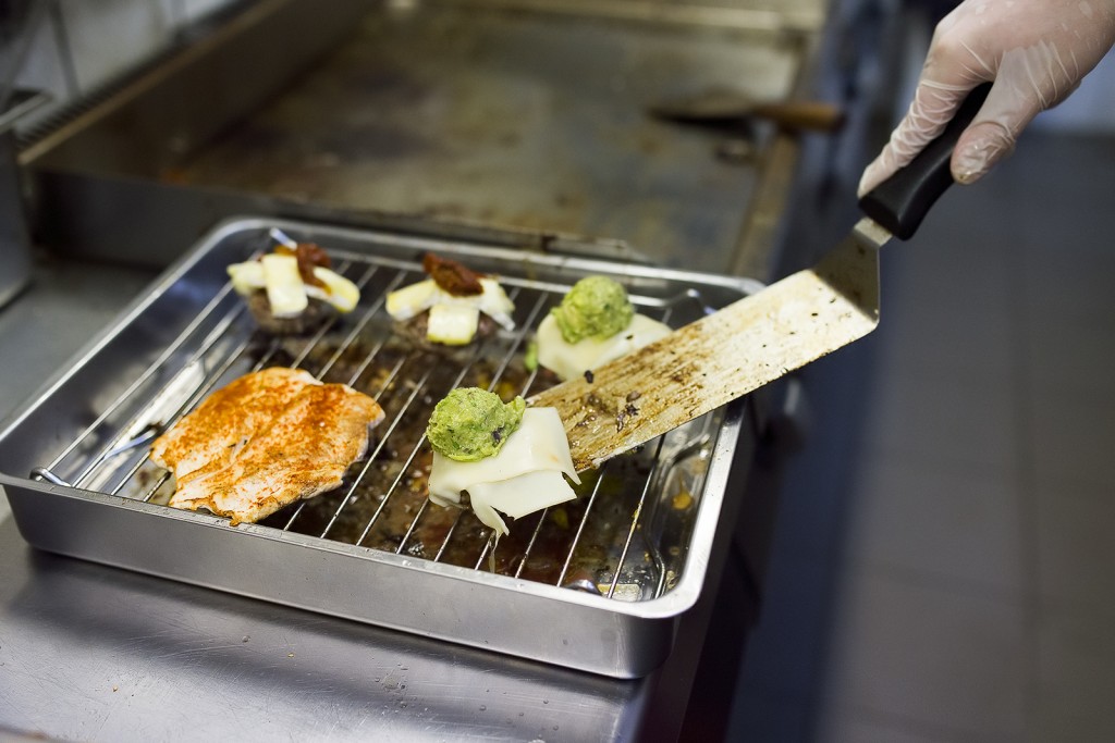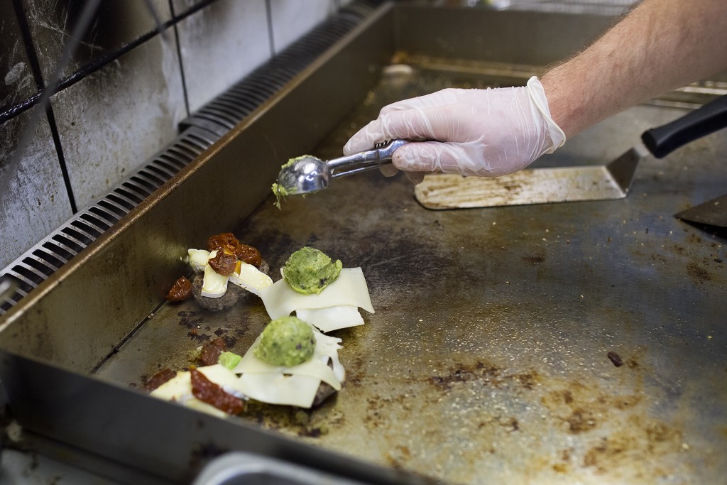 Ezen nagy nehezen túltéve magunkat be is száguldottunk a konyhába, hogy megnézzük, hogyan készül el a két újdonság, név szerint a Spring Boom, és a Mr. President. Mindkettőhöz először felpattantak a rostlapra a húsok, majd előkerültek a különböző feltétek, és itt kezdett a történet izgalmassá válni. Előbbi egy igazi tavaszi kollekció, ahogyan a neve is mutatja, azaz található benne egy házi guacamole, pico de gallo (ami nem más, mint egy salsa), valamint svájci sajt, és jalapenos-grill hagymás salsa.
