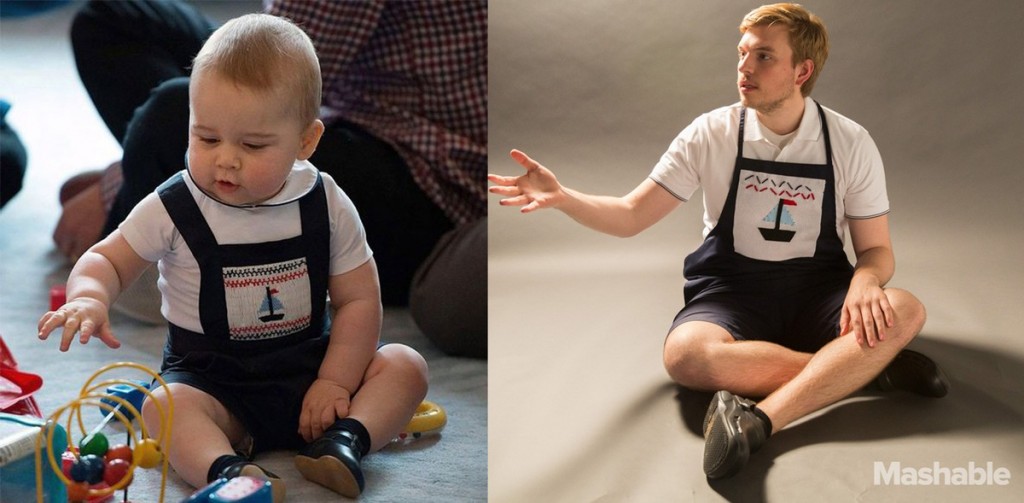 Még akár felháborítóan perverz is lehetne, ha mégse lenne helyette ilyen iszonyúan vicces. Max Knoblauchot, a Mashable elhivatott, 23 éves újságíróját úgy megihlette a királyi baba fejedelmi stílusa, hogy egy héten keresztül a kétéves György herceg ruháiba bújt. Minket megríkatott, szerintünk te sem bírod ki vigyorgás nélkül.