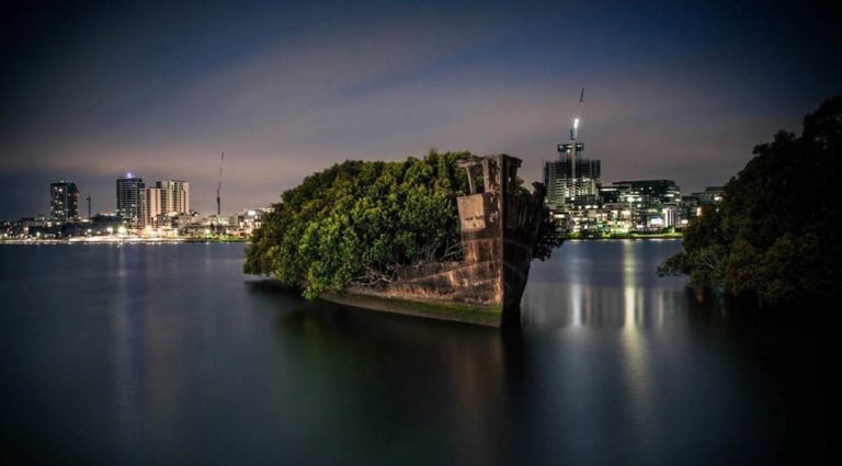 Ez a kiszuperált szénszállító hajó Sydney-ben a Homebush-öbölben úszkál egy komplett erdővel a fedélzetén. Az SS Ayrfield 1972 óta elhagyatott, azóta pedig szép lassan birtokba vette a természet.