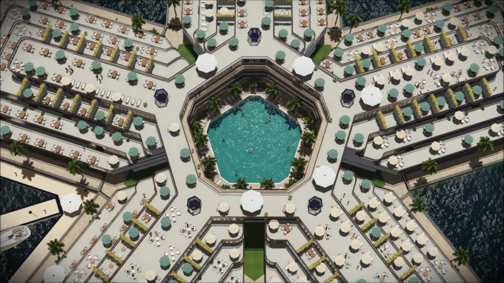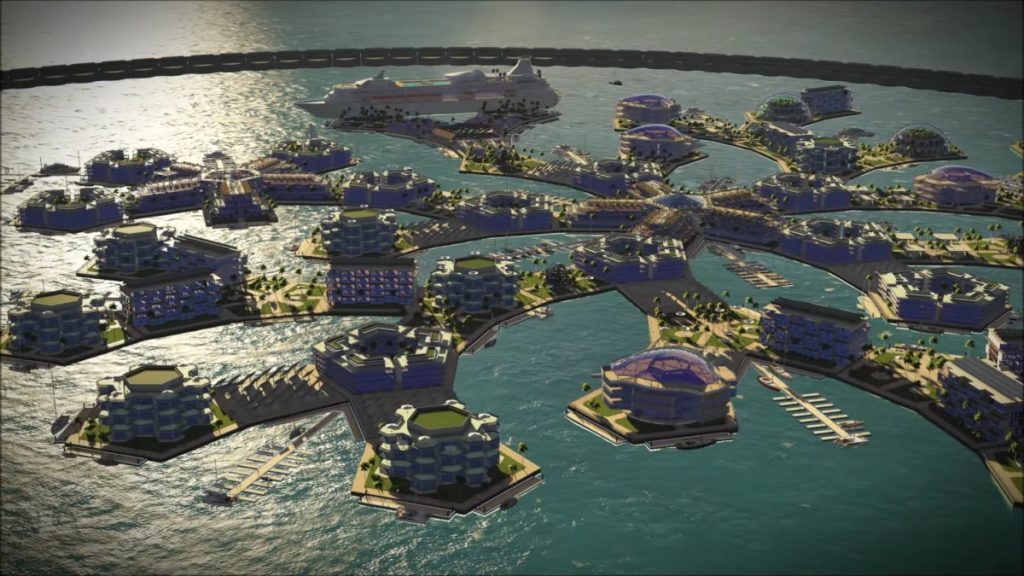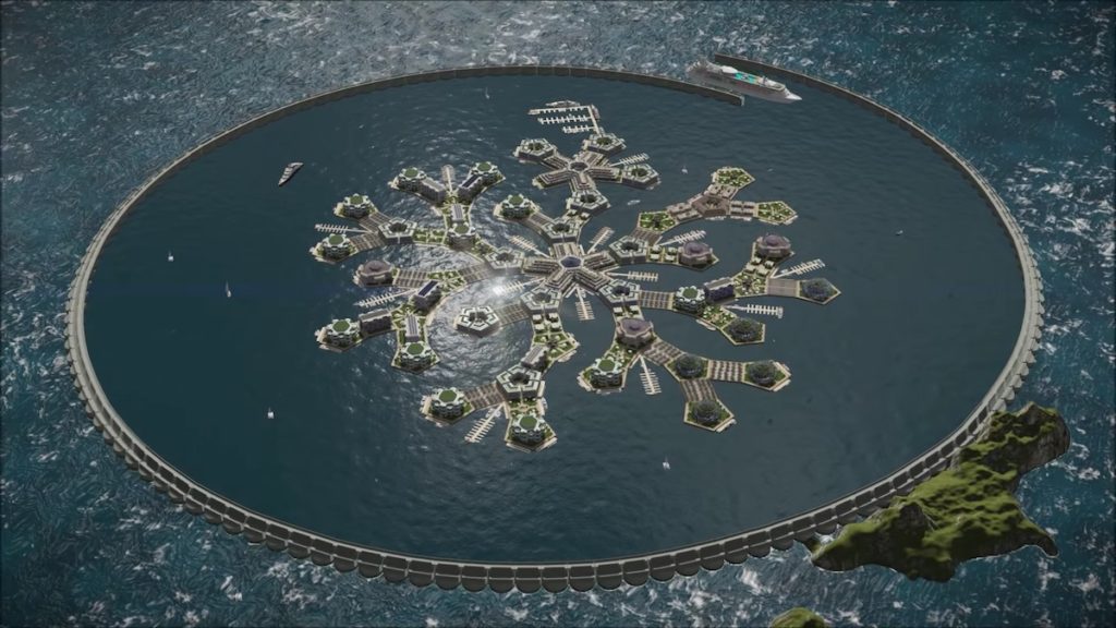 A közvetlenül a part mentén felépített úszó város a tervek szerint 10-15 platformból állna, amelyek mindegyike nagyjából húsz ember számára biztosítana lakhelyet, így egy városban két-háromszázan férnének el.