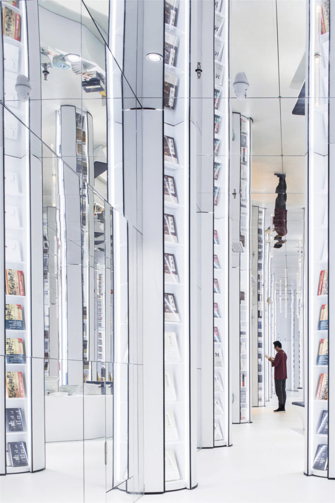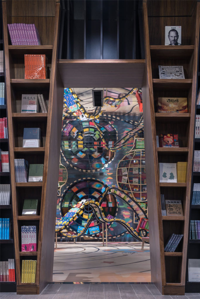 Lenyűgöző látvány, egymástól merőben különböző termekkel, amikkel együtt a trükk is mindig változik. A könyvesboltot egyébként az XL-MUSE tervezte, a koncepcióban a fő irányvonalat az óriási, szinte végtelen terek létrehozása jelentette. Jelentjük, sikerült.