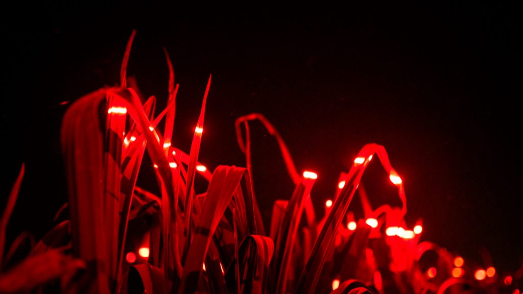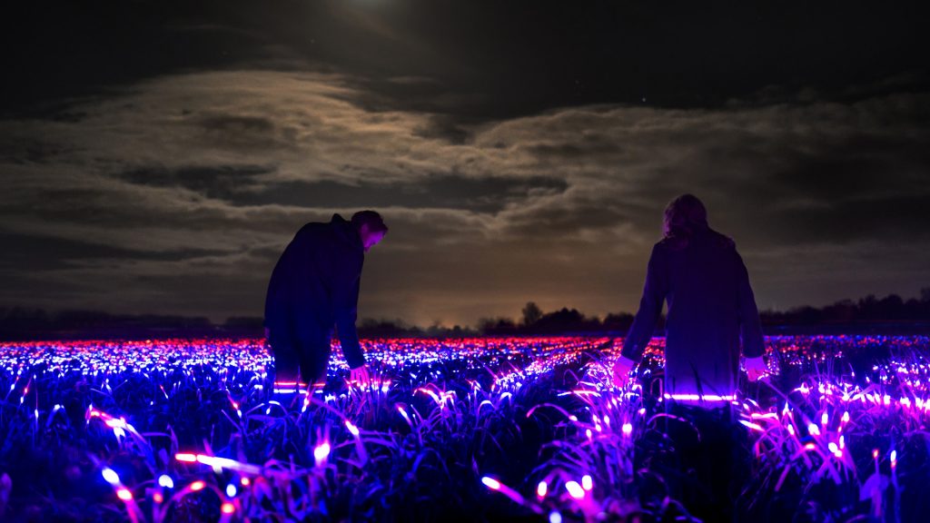 A módszert üvegházakban már használják, de a stúdió névadója-vezetője, Daan Roosegaarde átültette a megoldást a szabad ég alatti mezőgazdasági területekre is. A vörös, kék és ultraibolya fények nem statikusak, hanem mozognak, így még káprázatosabb az összhatás, és egyenletesebben kapnak fényt a növények.