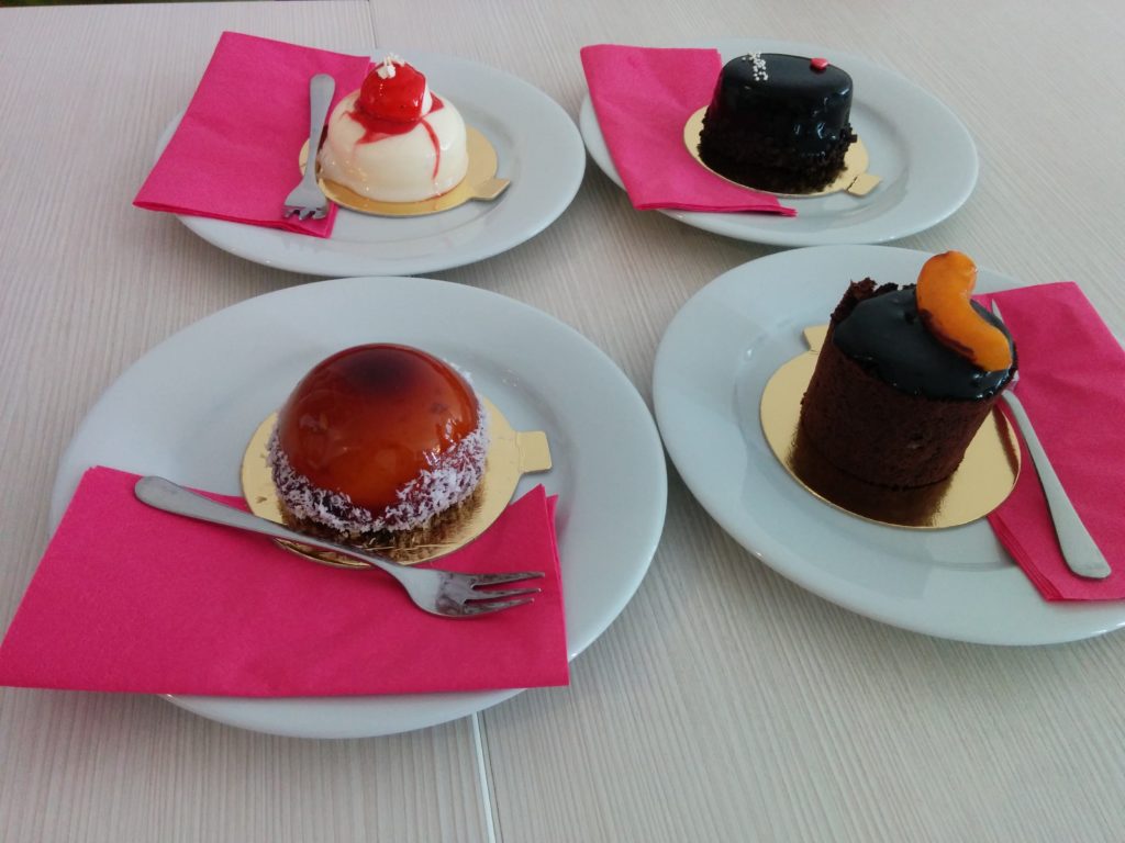 Nekem a túrós süti telitalálat: eszméletlen finom, nem túl tömény, nem túl édes, simán veri a Sport cukrászdát, ami után egy óráig mozgásképtelen vagyok az inzulinpumpa miatt, plusz a cukormennyiségtől összeragad a szám. Oszi egy kókuszos-karamellás francia kupolás sütivel emeli a tétet, amibe rögtön szerelmes lesz. Talán még egy könnycsepp is megjelenik a szeme sarkában, ahogy a gyomra olyan jeleket küld az agyának, amiket desszerttől még sosem kapott, ám diszkréten elmorzsolta, hogy ne vegyük észre. Nem vettük, nem hivatalos a könnyezés.
