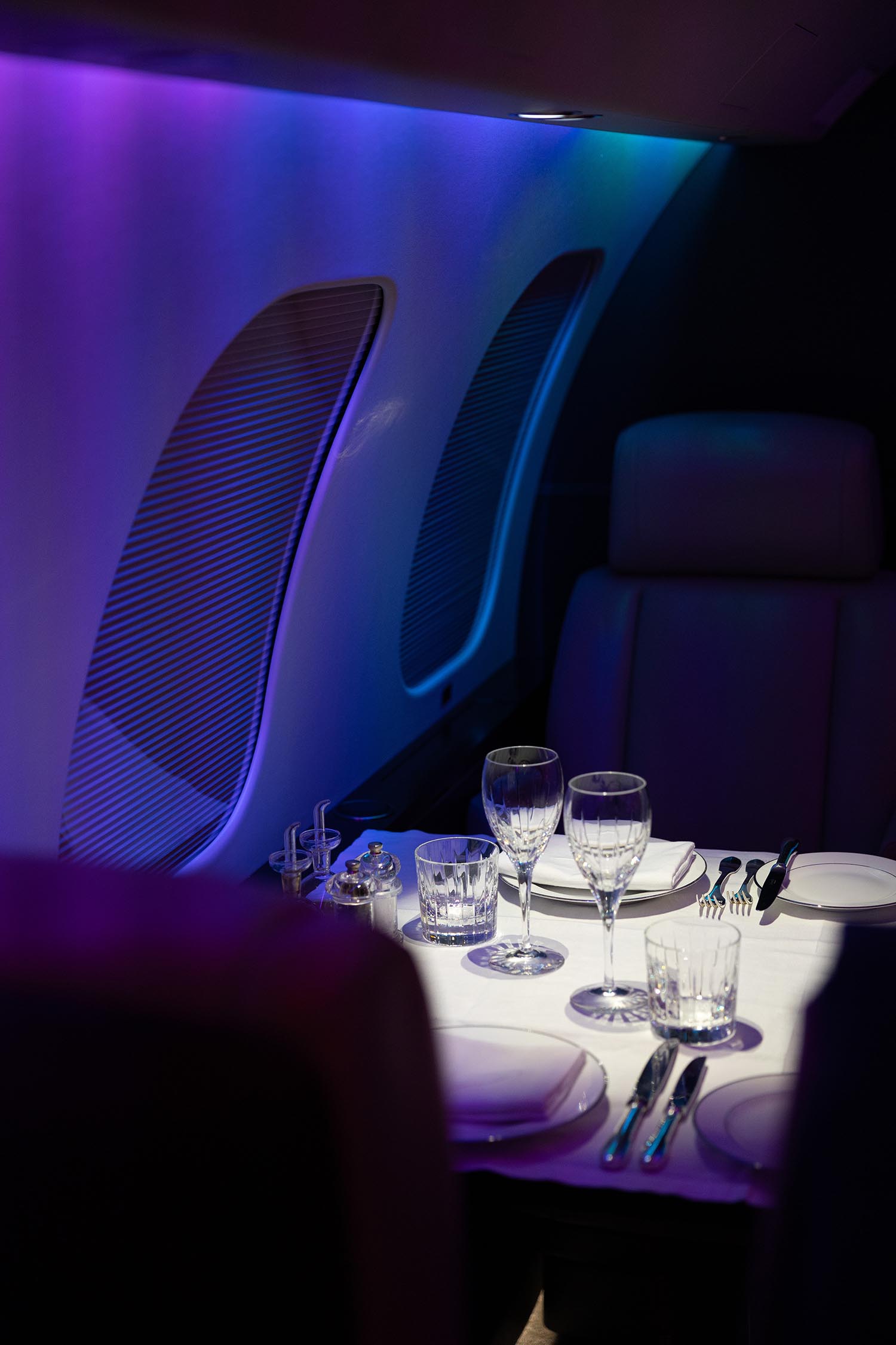Az étkezés a fedélzeten egy külön fejezet, hiszen a VistaJet Private Dining csapata a világ legjobb séfjeivel és éttermeivel dolgozik együtt. A menüt nemcsak az utasok ízléséhez, hanem a magassághoz is igazítják. Tudományos tény, hogy a levegő alacsonyabb páratartalma és a nyomás miatt másképp érzékeljük az ízeket: a sós és édes ízek tompulnak, míg az umami felerősödik. A VistaJet séfjei ezt figyelembe véve alkotják meg a fogásokat, de arra is van lehetőség, hogy a kedvenc éttermedből rendeljék meg az ételt. A borlapot a cég borrajongó alapítója és elnöke, Thomas Flohr személyesen állította össze, olyan tételekből, amelyek a felhők felett is a legjobb formájukat hozzák.