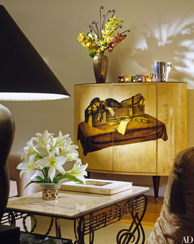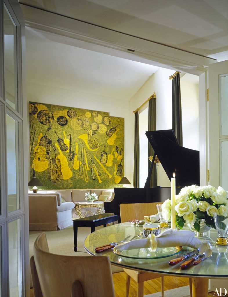 Nancy Corzine bársonyhuzatokat, Kathleen Spiegelman szekrényt és Aga John szőnyeget, Emile Rene Menard- és Sir William Russell Flint-festményeket, ametiszt kövekkel díszített 19. századi csehszlovák csillárt, olasz lámpát, valamint egy 18. századi itáliai tükörkeretet és barokk stílusú padot is.