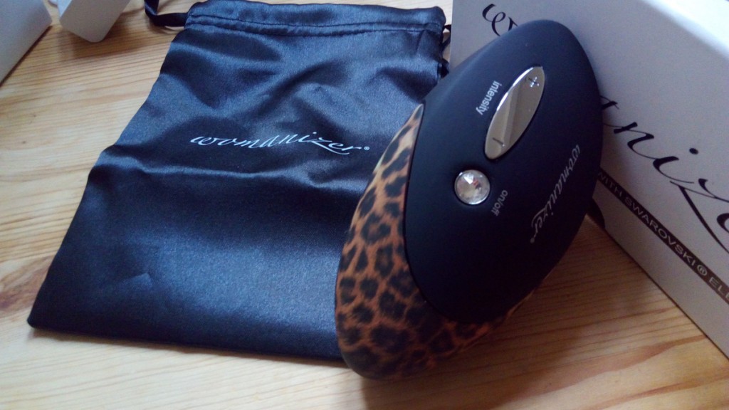 A Womanizer Pro Black elsőre egy nagyon deluxe-konzumprostis luxusvibrátornak fest: leopárdmintás és fekete, a start gombja egy Swarovski kristály (ami szép, de azért mivan?!) USB-töltős, világít a sötétben, mindehhez apró, tenyérbe simuló formatervezés, valamint egy fel-le kapcsoló fokozatgomb van még rajta. Na meg a szívórésze, minthogy a Womanizer csiklóizgatónak ez a varázsejere: nem csak a vibrálással dolgozik, de nem ám. Hanem egy olyan, belül üreges résszel, ami szívó-szopogató-hullámoztató mozgásra képes. Ez a vibrátorok terén egy totális újítás: míg a mikrofonfejű csiklóizgatók csak a vibrálással dolgoznak, a Womanizer egy sokkal komplexebb élményt ígér. És már azt is tudjuk, hogy nem csak ígér.