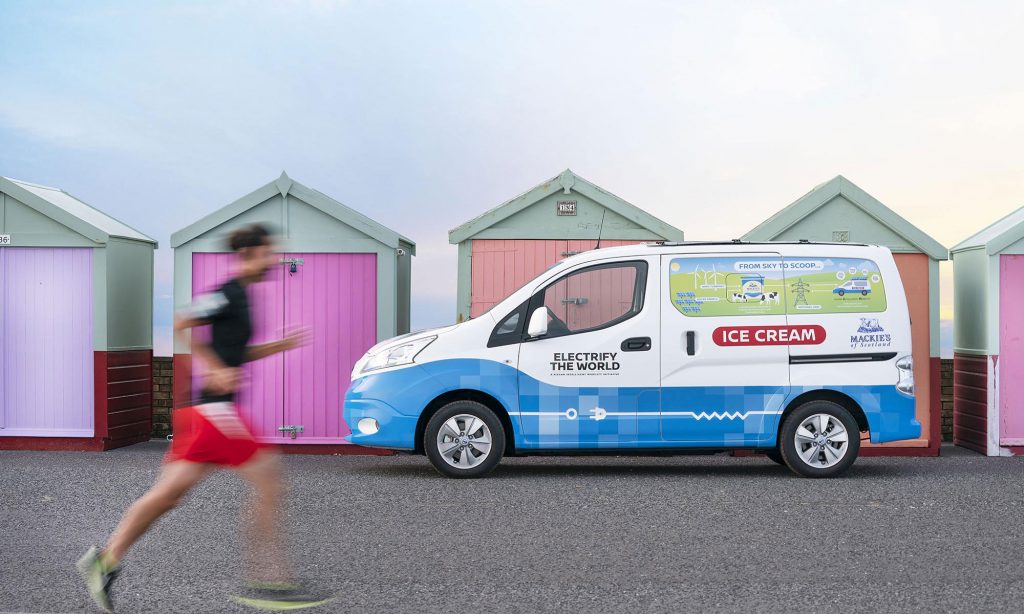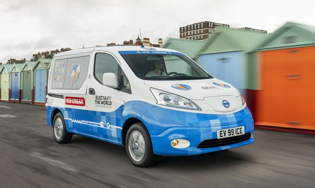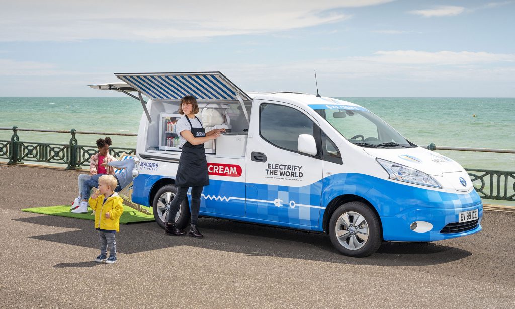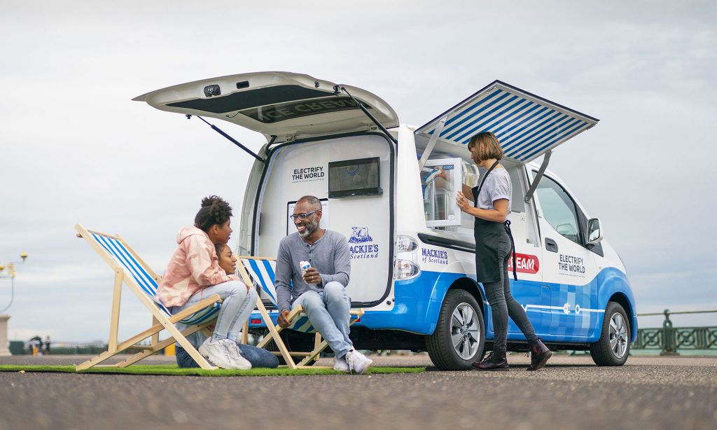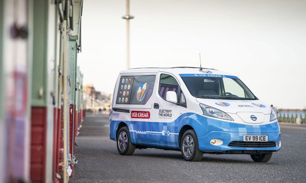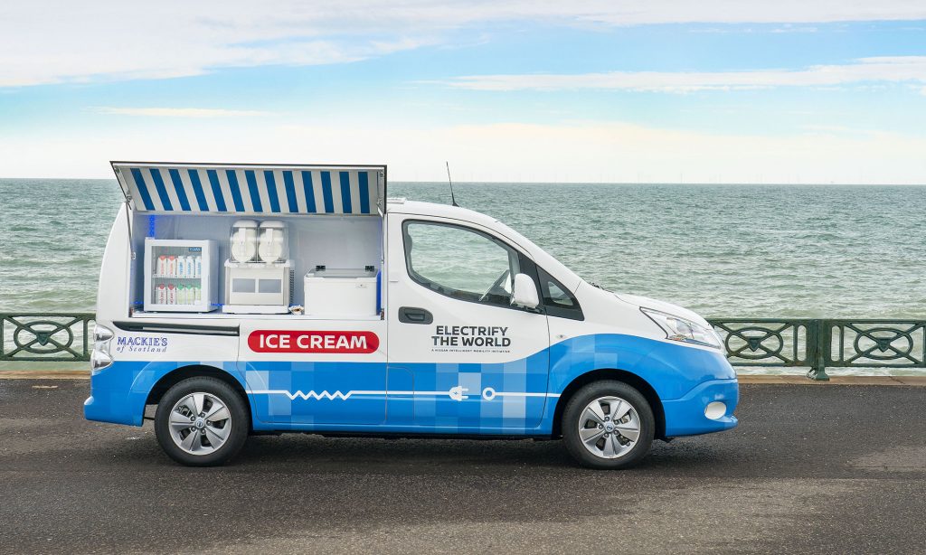 Egy Nissan e-NV200 villanyfurgonból ugyanis egy olyan fagyiskocsi készült, amelynek nemcsak meghajtása, hanem a szintén energiaigényes hűtése is elektromos. Utóbbiról a Nissan Energy Roam nevű rendszere gondoskodik, amelyhez régi Nissan Leaf-akkukat használnak fel, így még zöldebb a koncepció.