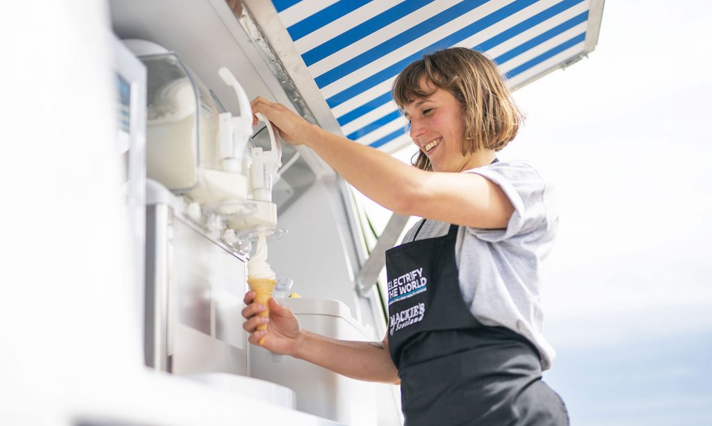 De ez még nem minden: a belevaló fagylaltot a Mackie’s nevű skót cég gyártja, amely eddig is kizárólag megújuló forrásokból nyerte az energiát, ezért feltehetően a fagyiskocsit is így, abszolút zéróemissziós módon használják majd. Ebben segítenek a tetejére szerelt napelemek is, amelyek négy órán belül képesek teljesen feltölteni a Roam rendszert.