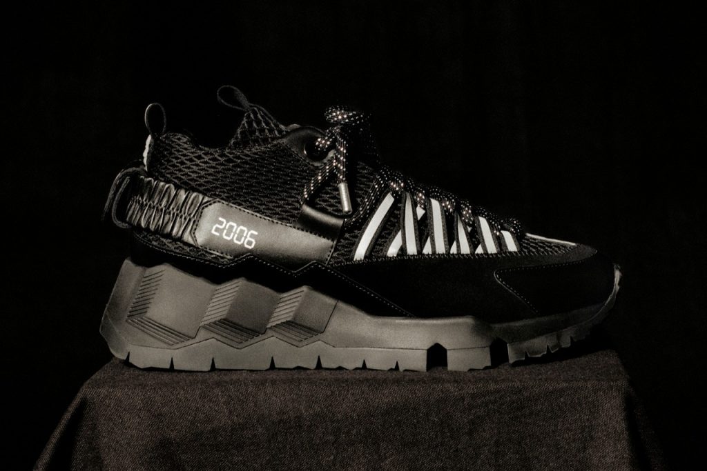 Elöljáróban ennyi, kicsit kifejtve pedig annyi, hogy közös munkájuk során valami igazán újszerűt akartak létrehozni: a csuka cipőfűzője a cipő felső részén fekszik, így majdnem olyan, mint egy túracipő, annyi különbséggel, hogy alatta egy húzógyűrűs cipzár található. Na jó, akad azért itt más is. Szintén újszerűek a nyelv és a sarok húzófülei, a világosabb színkombináció pedig rendesen visszarepít minket a kilencvenes, kétezres évekbe – hogy az apafíling garantálva legyen –, de azért tegyük hozzá, hogy a fekete lépőben Batman is szívesen elslattyogna.