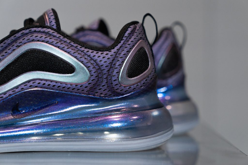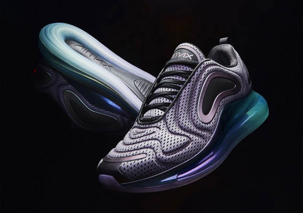 A sarki fény csodálatos jelenségét megelevenítő Air Max 720 így két színkombinációban érkezik, a nőké kissé világosabb, zöldebb, a férfiaké pedig egy ibolya alapszínű, de kékes-zöldes elemeket is tartalmazó sneaker lesz.