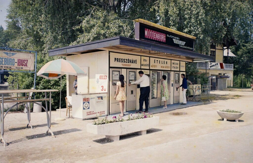 Csúcstechnika 1971-ben: az Utasellátó automata büféje Balatonfüreden, a Vitorlás étterem mellett (Fotó: Fortepan/Bauer Sándor)