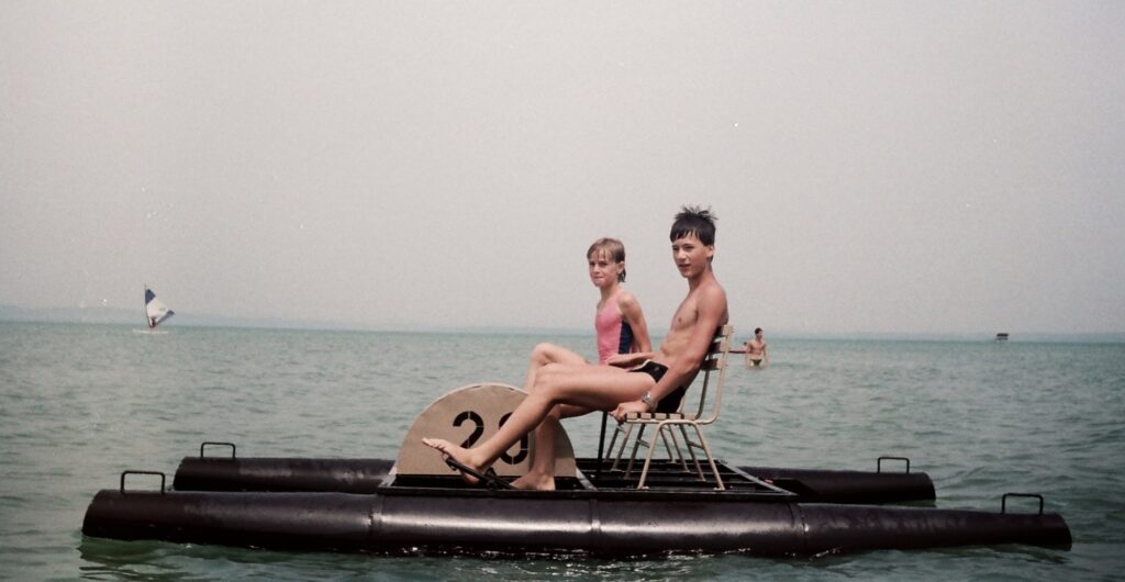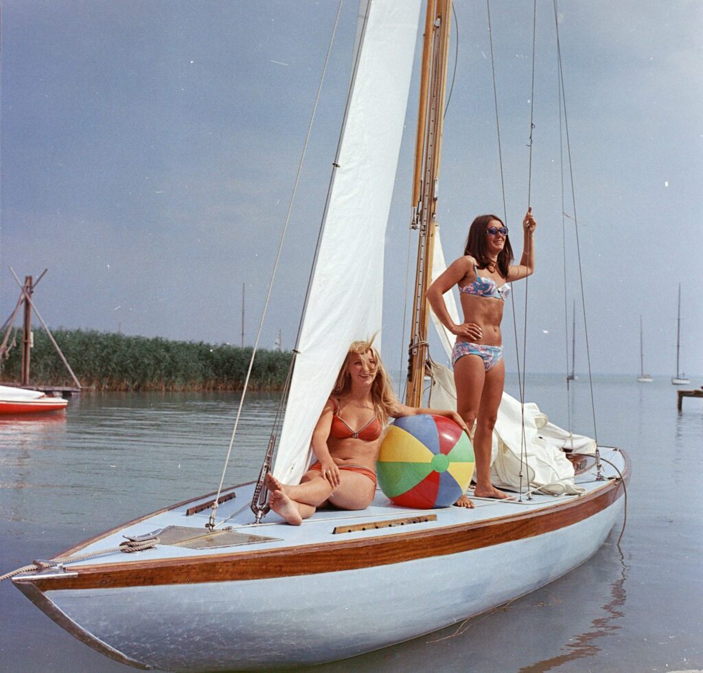 Zamárdi, 1970: az úttörőtábor lakói, a távolban Tihany és Balatonfüred (Fotó: Fortepan/Péterffy István)