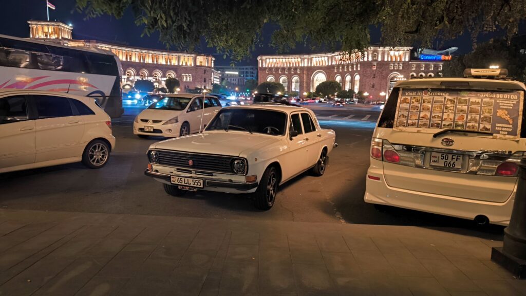 Kései Volga M24 este a város szívében, a Köztársaság téren, ahol szabad, vagy legalábbis lehet parkolni is
