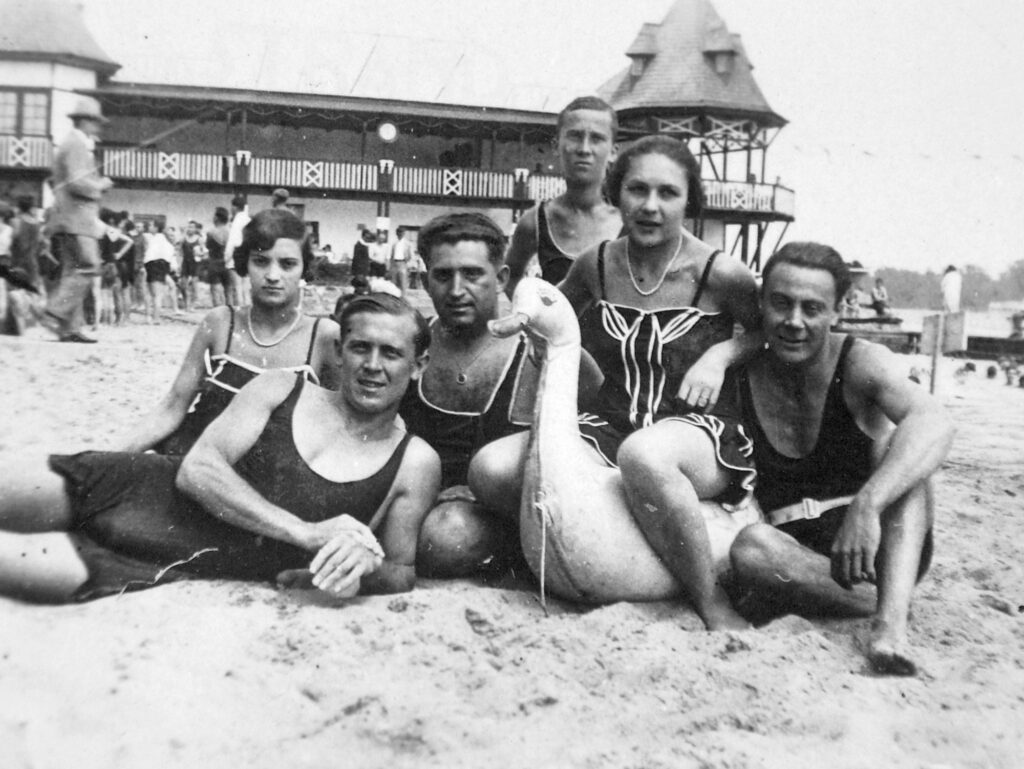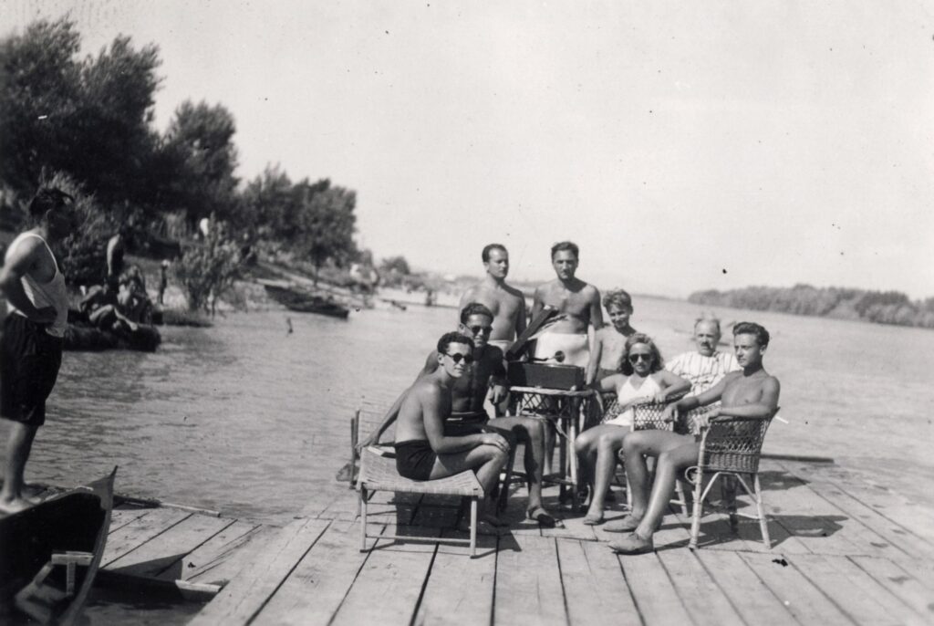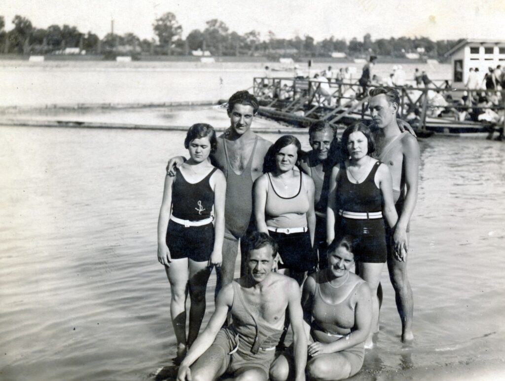 Strandolók a Duna strandfürdőnél, az Újlaki rakparton, a Sajka utcánál, 1933-ban (Fotó: Fortepan)