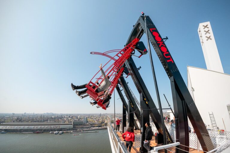 Első pillantásra irodaháznak néz ki, de ennél jóval többet tud az amszterdami A’dam Tower. Ott van például a forgó étterem, ami egy óra alatt tesz 360 fokos fordulatot, vagy a tetején található óriáshinta, ahonnan szó szerint a városra lógathatod a lábad. Az ide felvezető lift sem semmi, az üvegkabin szédítő tempóban száguld fel, és mindezt neonfények teszik emlékezetes utazássá. Az épületben hotel is működik, ahol diszkógömbbel és karaoke-val dobták fel a lifteket.