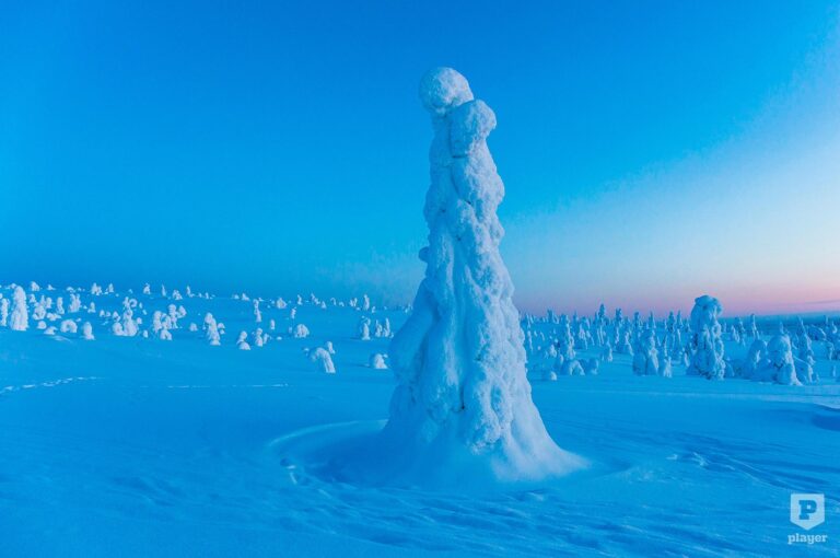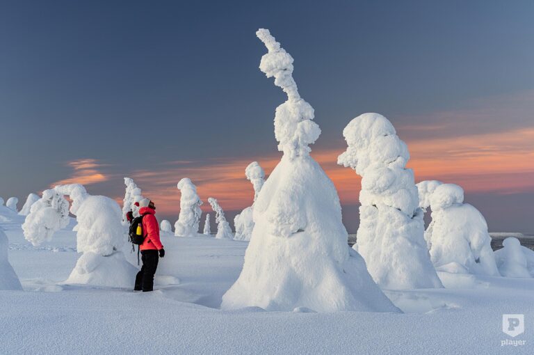 Mik ezek a furcsa hólények? Amikor a tél átveszi az uralmat a Riisitunturi nemzeti parkban, a fákat nehéz hótakaró borítja. A különleges formájukra magyarázat, hogy az itteni fák hóterhelése eltér más hóval borított fákétól, egy nagyobb fa akár több tonna havat is képes az ágain cipelni. A hóval borított fákkal teli nemzeti park minden évben Finnország egyik legkedveltebb fotós helyszíne. Aki a sarki fényben szeretné elkapni, januárban keresse fel, ragyogó napsütéses képekhez pedig a február az ideális időpont.