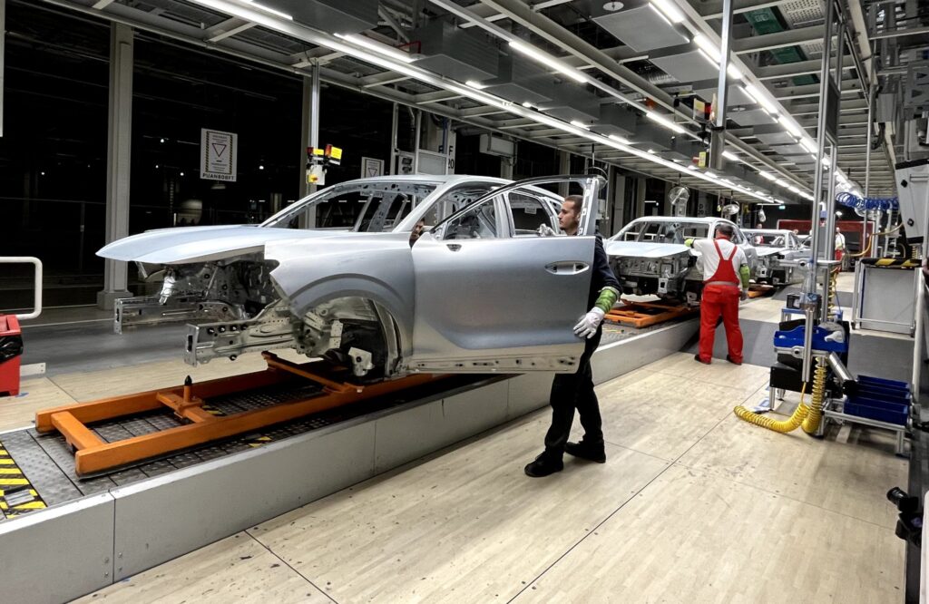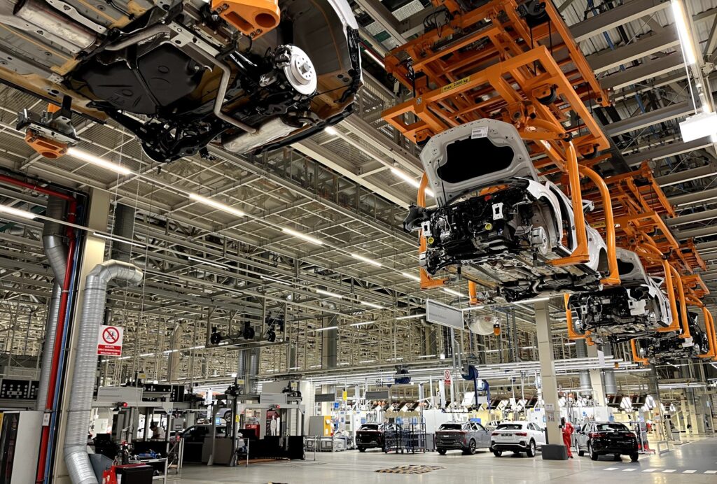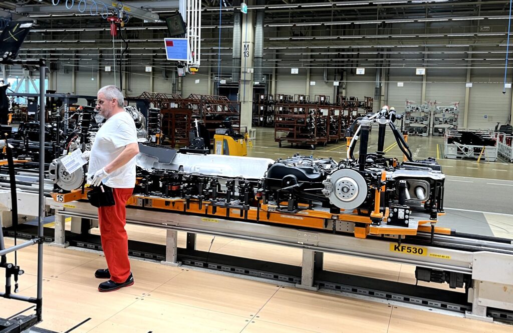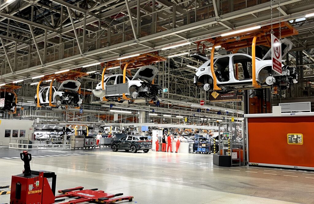 A földszinten zajlik a munka, az alkatrészek jó része, vagy akár már a szinte kész autók a magasban jutnak el a következő munkafázishoz. Teljesen automata liftekkel kerülnek lejjebb, ahol és amikor kell