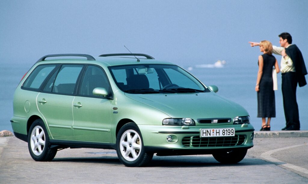 Gondtalanul horizontot szemlélő tökéletes pár nélkül szinte nincs is gyári fotó a kilencvenes évekből, és ez nincs másképpen a Fiatnál sem. Az előtérben pedig a Marea Weekend, tehát a kombi változat pózol, melynek kétfelé nyíló csomagajtaján keresztül könnyebb megtölteni az 1,5 köbméteresre bővíthető rakteret. Öthengeres benzinmotorral pedig még a hangja is olyan, amilyen meglepő lehet egy szokványos kombi Fiattól.