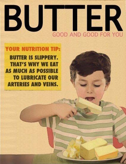 Vissza a cikkhezVaj vagy margarin? Örök vita, de ez a reklám egyértelműen eldönti a kérdést. VAJ, minél nagyobb mennyiségben, magában, úgy 25 dekás darabonként fogyasztva, természetesen gyerekeknek is.