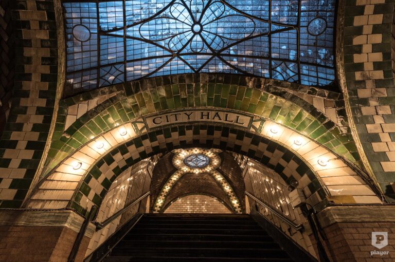 New York első metróját 1904-ben adták át, és a vonal déli végállomása a városháza alatt volt, a City Hall állomás pedig pontosan úgy néz ki, ahogyan egy huszadik század eleji metróállomást elképzelsz, boltíves mennyezete tele van finom részletekkel, például üvegcsempékkel és csillárokkal. Rafael Guastavino spanyol építész munkája valóban lenyűgöző, de nem túl praktikus, idővel ugyanis kiderült, hogy az ívelt mennyezet miatt nem minden metrókocsi tudta használni. Az utasok is elkerülték, a közeli Brooklyn Bridge vasútállomás népszerűbb volt, jobb csatlakozással a villamosokhoz. 1945-ben zárták be, amikor az utasok száma nagyon lecsökkent. Az elhagyatottságában is gyönyörű állomásra ma a New York-i közlekedési múzeum vezet túrákat, és bár a jegyek 50 dollárba kerülnek, így is gyorsan elfogynak.