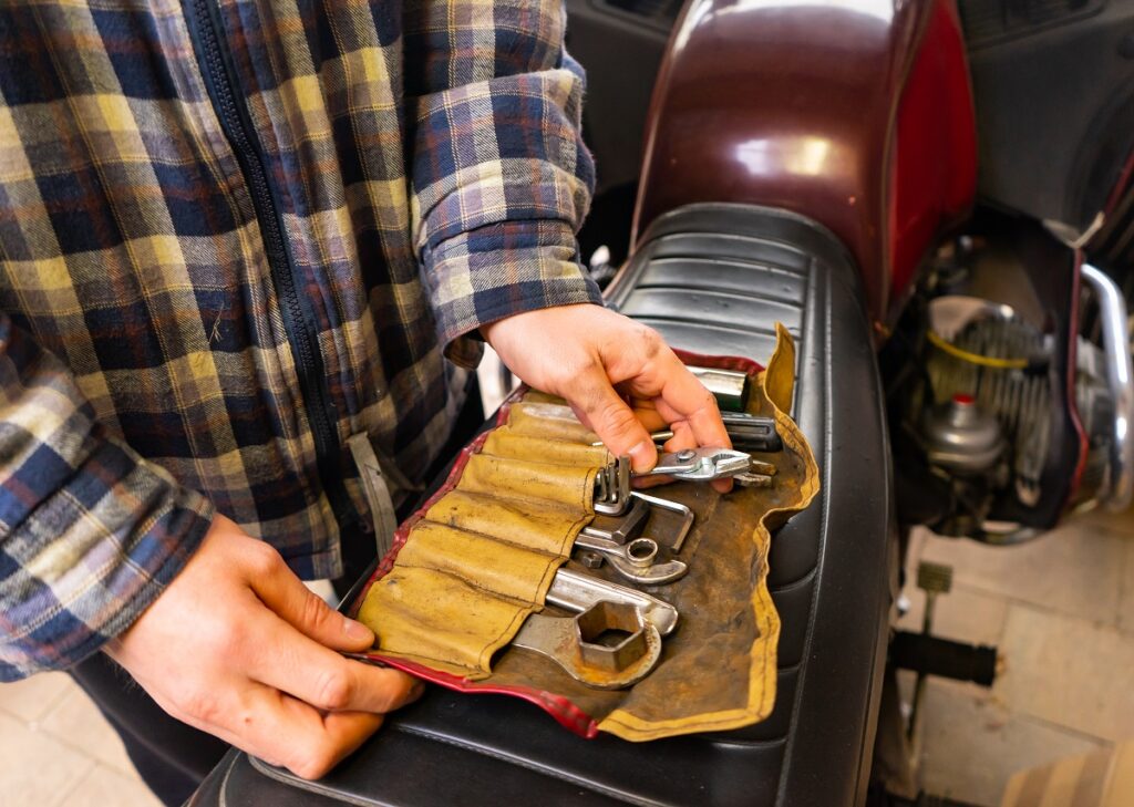 Nem fogjuk adni a multitalentumot, hiszen nem tartozunk azok közé, akik képesek megszerelni a motorjukat az út szélén, de azt érdemes belátni, hogy a géppel kapcsolatban egész sor olyan probléma is felmerülhet, amit zéró előképzettséggel is képes orvosolni az ember – már ha van nála szerszámkészlet. Egy kilazuló lábtartó, kuplungkar vagy tükör ott helyben megszerelhető és a lánc megfeszítésének sem szabadna olyan feladatnak lenni, ami miatt muszáj szerelőhöz vinni a motort. Érdemes beszerezni egy előre összeállított, méretében is kompakt készletet, vagy magunknak összepakolni egyet a leggyakrabban használt szerszámokkal, egy maroknyi gyorskötözővel és ragasztószalaggal. Jó eséllyel ez sem fog kelleni, de ha mégis, hálát fogsz rebegni, amiért volt annyi eszed, hogy bedobtad a táskádba.